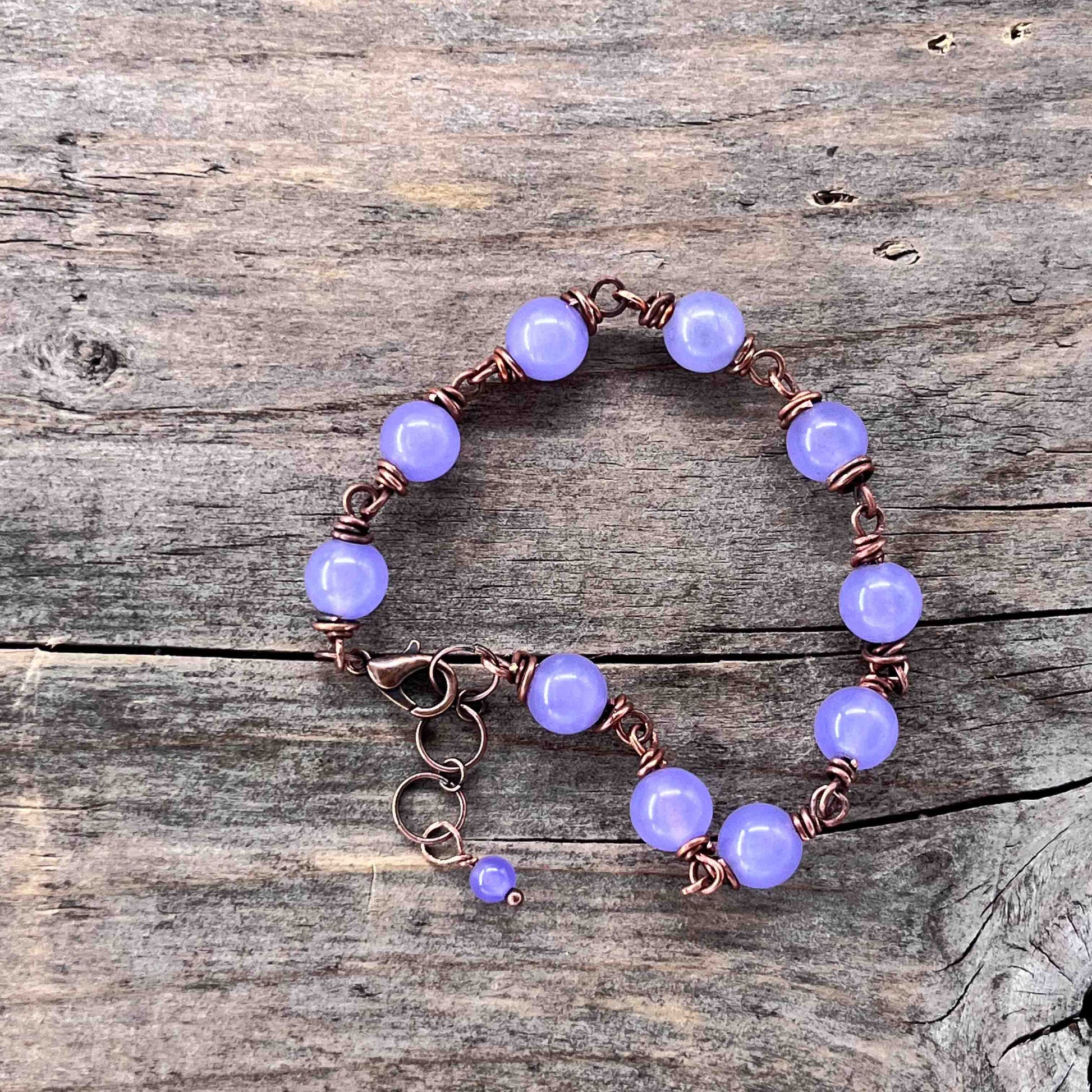 Det fine med kobber, er at det blir mørkere over tid. Puss armebåndet med en myk, litt fuktig klut innimellom for å få frem glansen igjen.