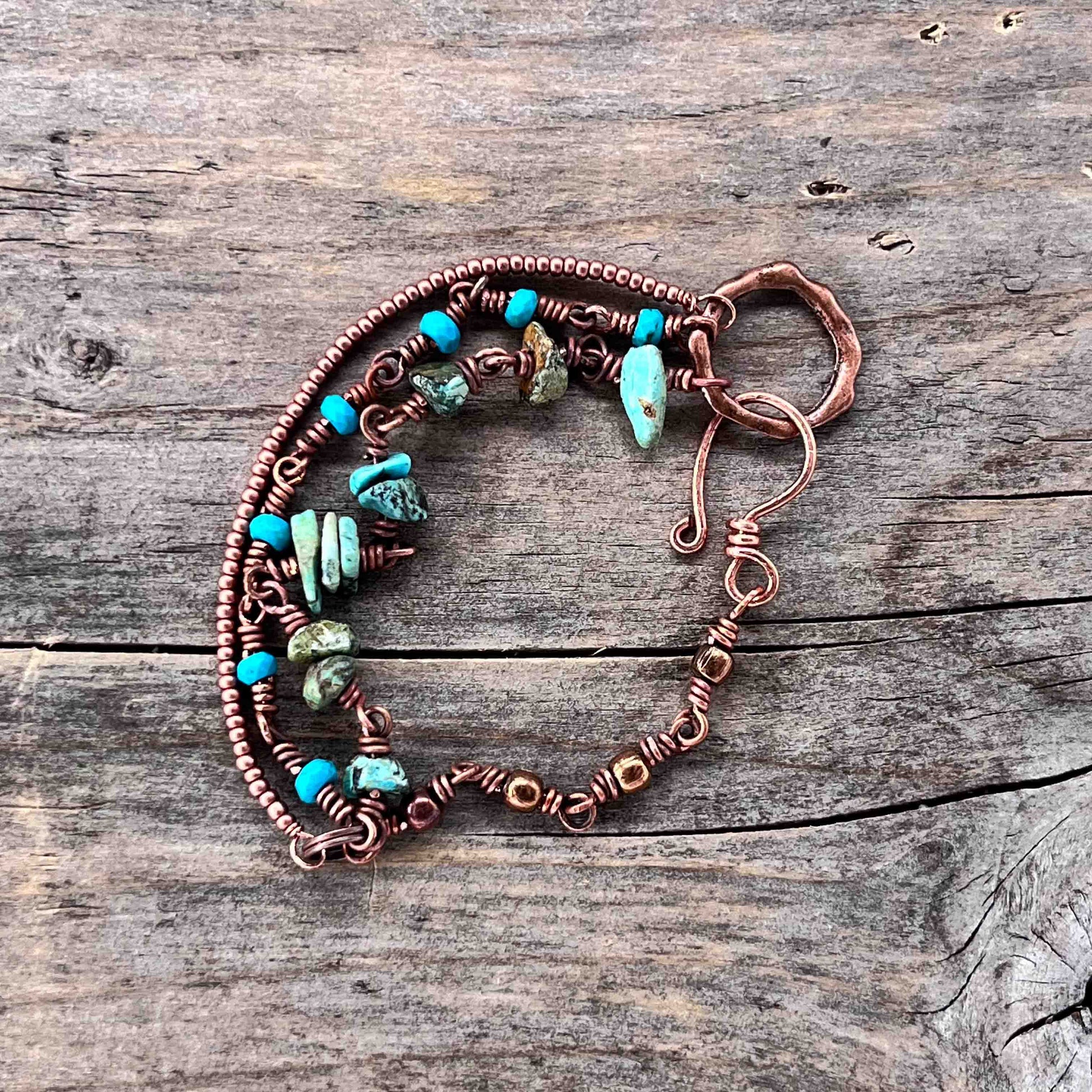 Armebåndene er unike. Jeg lager kun et eksemplar av hver. Det er noe av det fine med håndlaget. Når du kjøper et armebånd av meg, er det kun du som har akkurat det armebåndet.