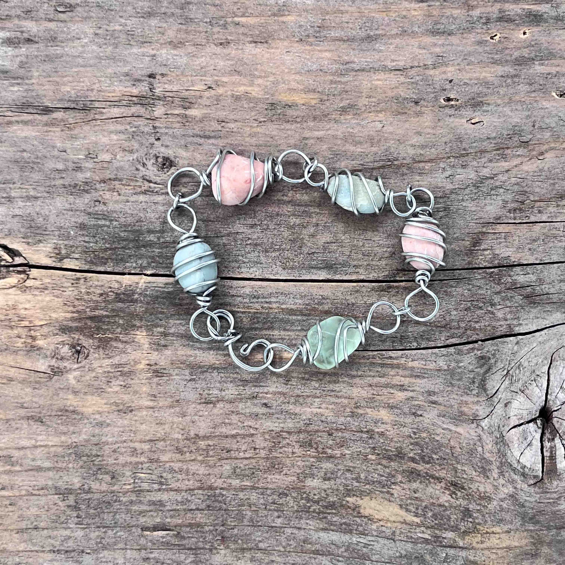 Armebåndene er unike. Jeg lager kun et eksemplar av hver. Det er noe av det fine med håndlaget. Når du kjøper et armebånd av meg, er det kun du som har akkurat det armebåndet.