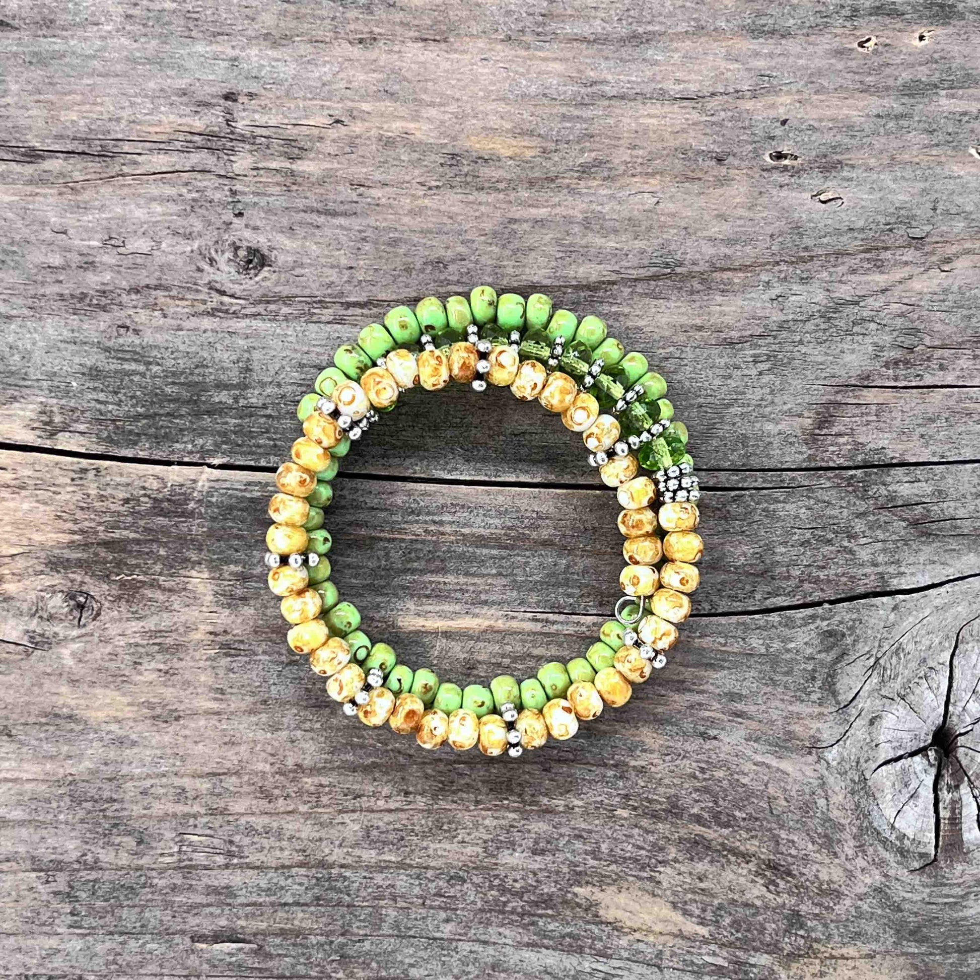 Armebåndene er unike. Jeg lager kun et eksemplar av hver. Det er noe av det fine med håndlaget. Når du kjøper et armebånd av meg, er det kun du som har akkurat det armebåndet.