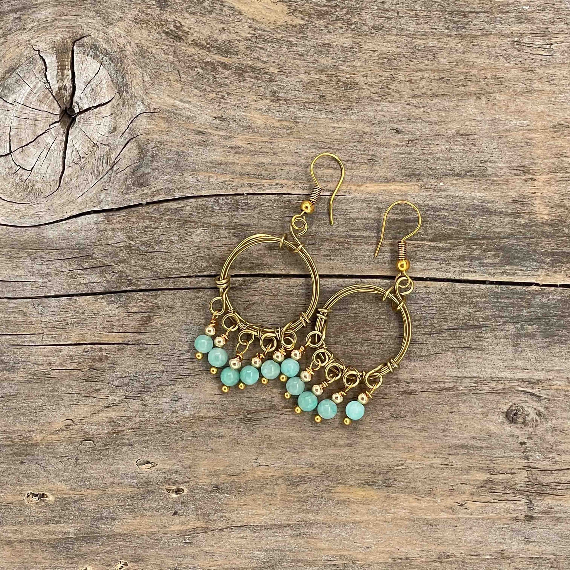 Perlene er av ekte stein, glass, messing eller bronse. Messing wire. Nikkelfrie kroker.