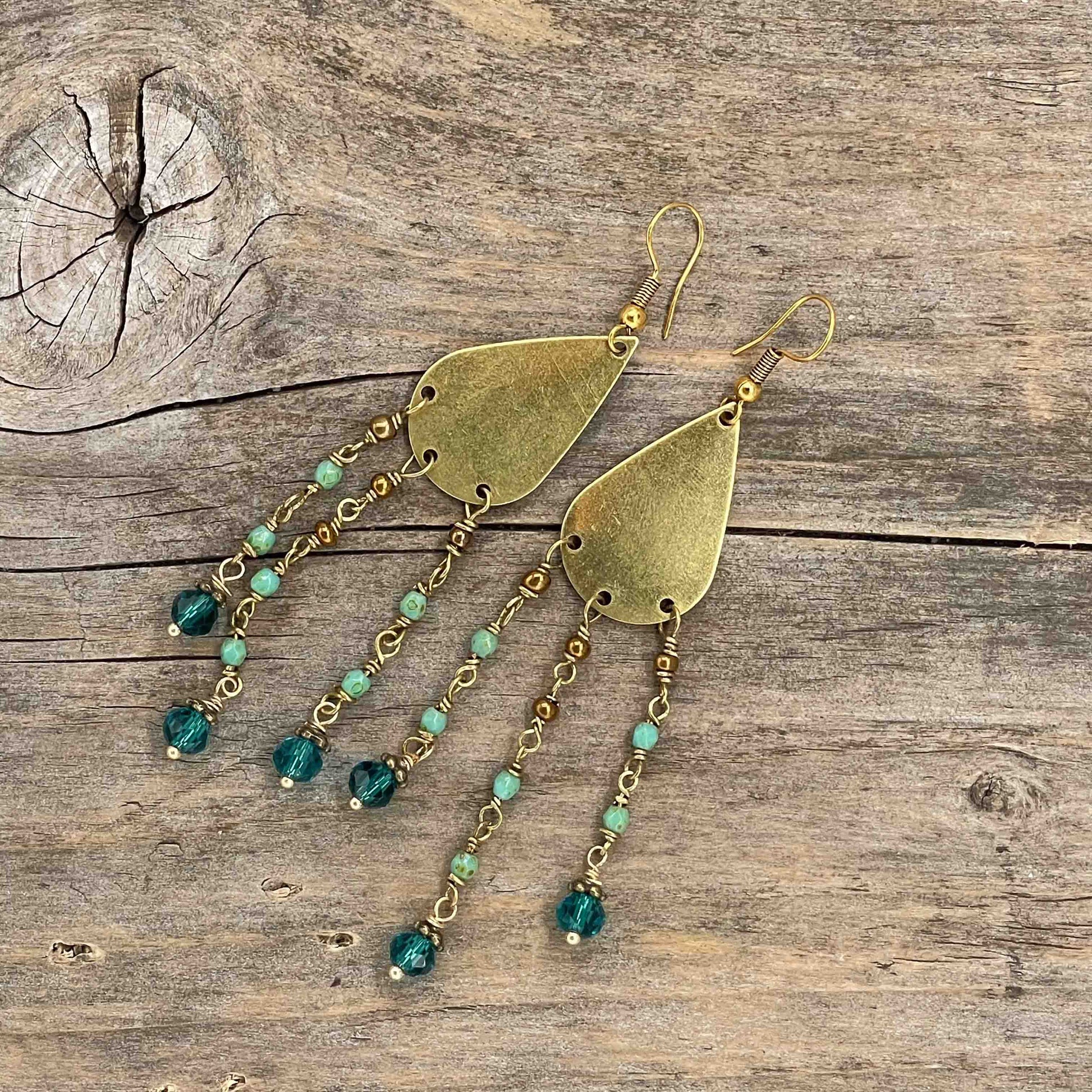 Perlene er av ekte stein, glass, messing eller bronse. Messing wire. Nikkelfrie kroker.