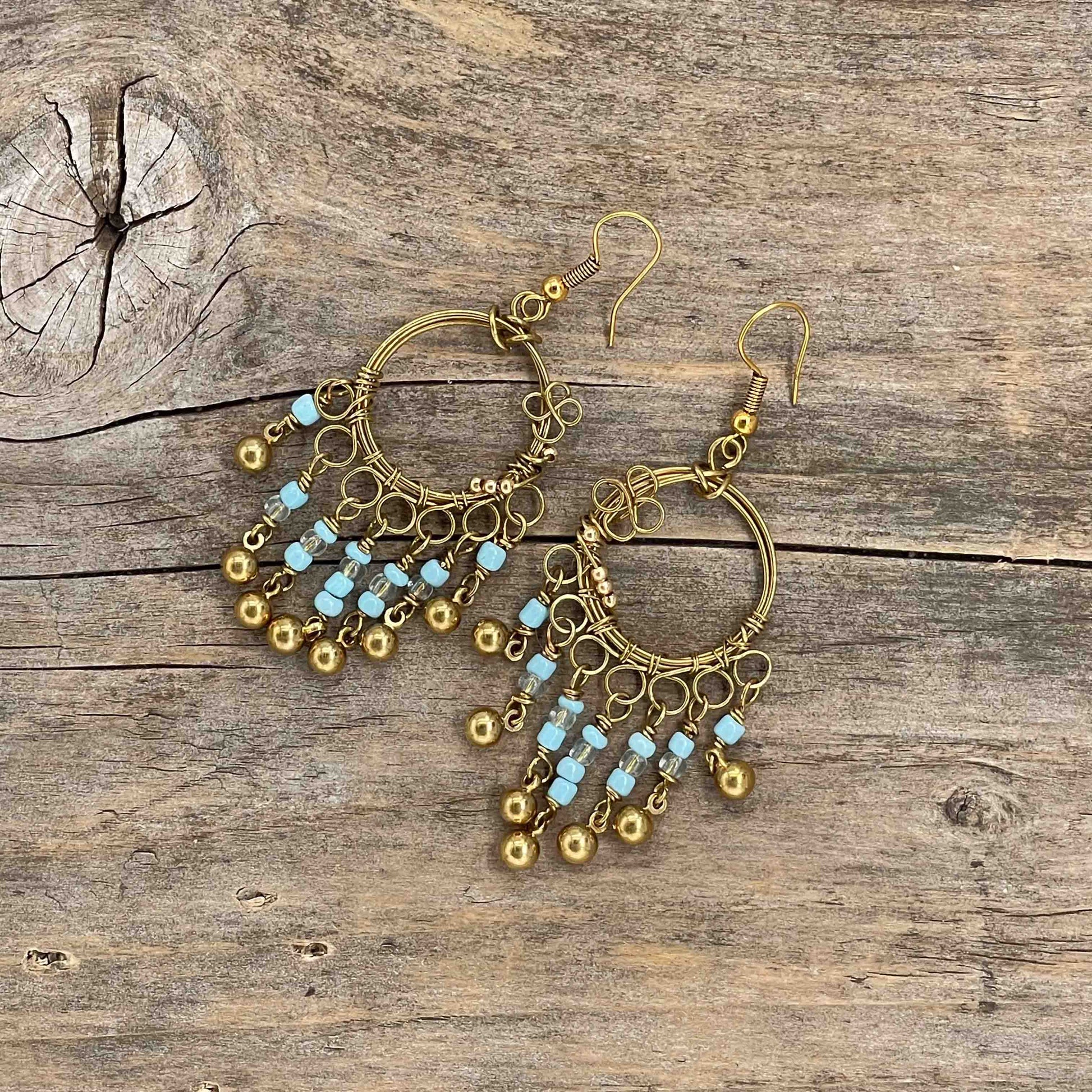 Perlene er av ekte stein, glass, messing eller bronse. Messing wire. Nikkelfrie kroker.