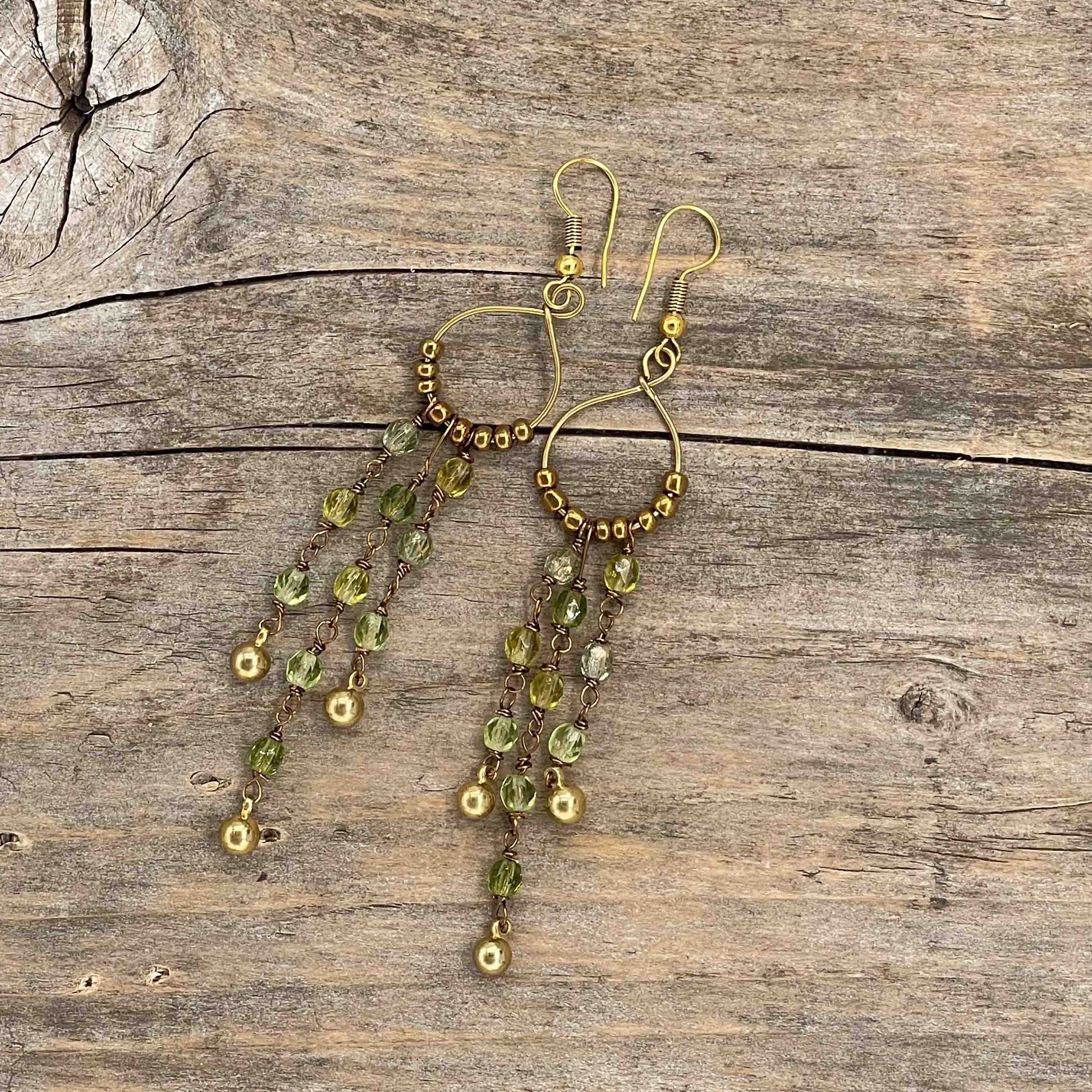 Perlene er av ekte stein, glass, messing eller bronse. Messing wire. Nikkelfrie kroker.