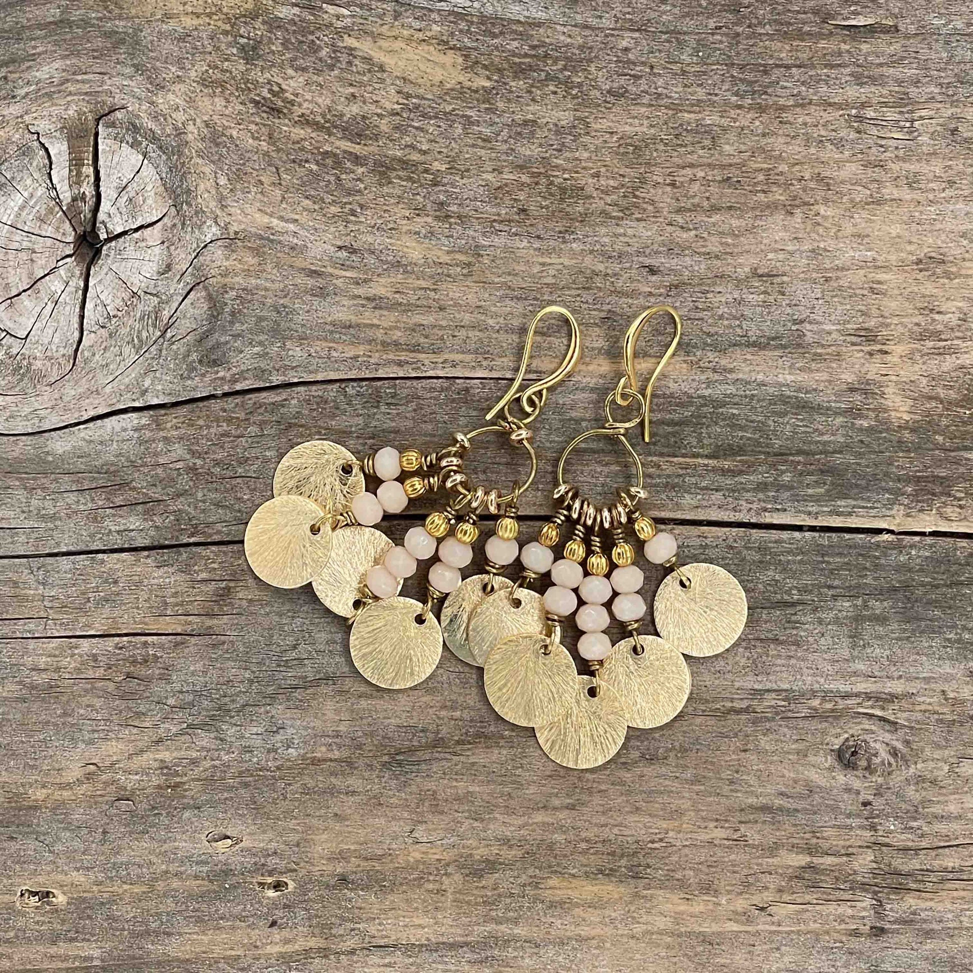 Perlene er av glass og gullbelagt kobber. Coins av børstet messing. Messing wire. Nikkelfrie kroker.