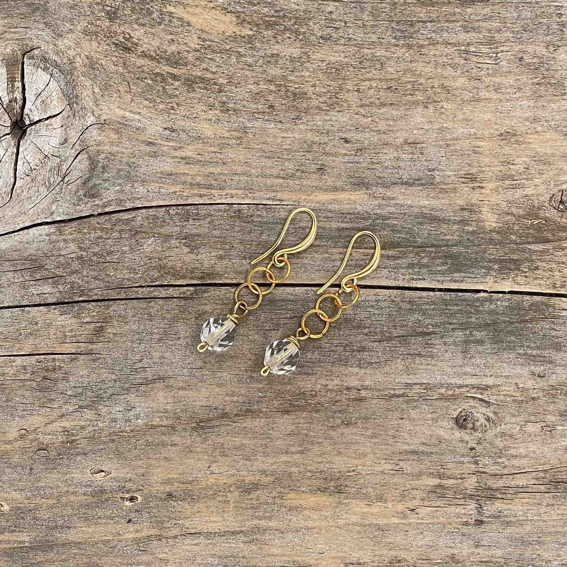 Perler av glass, messing og gullbelagt kobber. Messing wire. Nikkelfrie kroker.