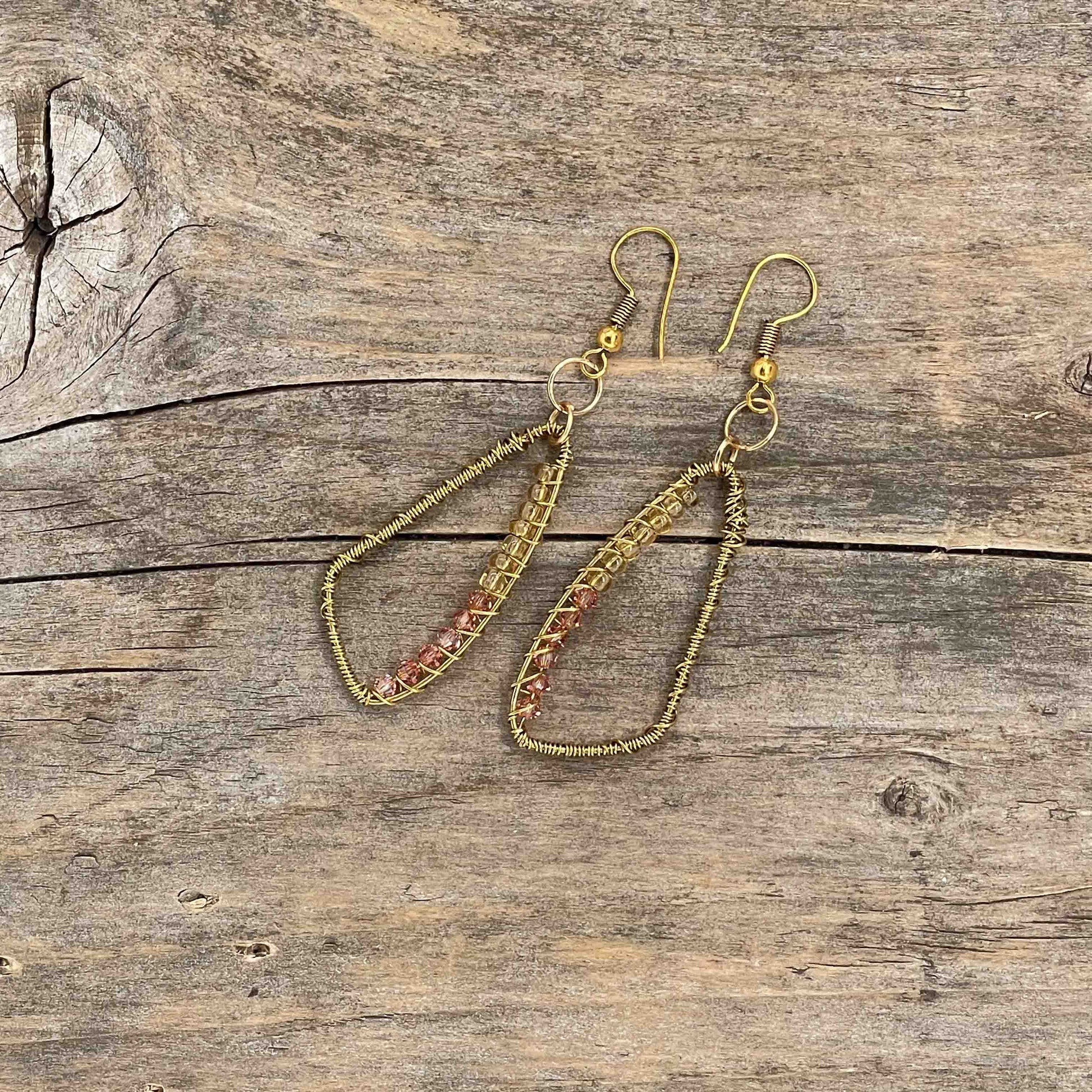 Perler av glass, messing og gullbelagt kobber. Messing wire. Nikkelfrie kroker.