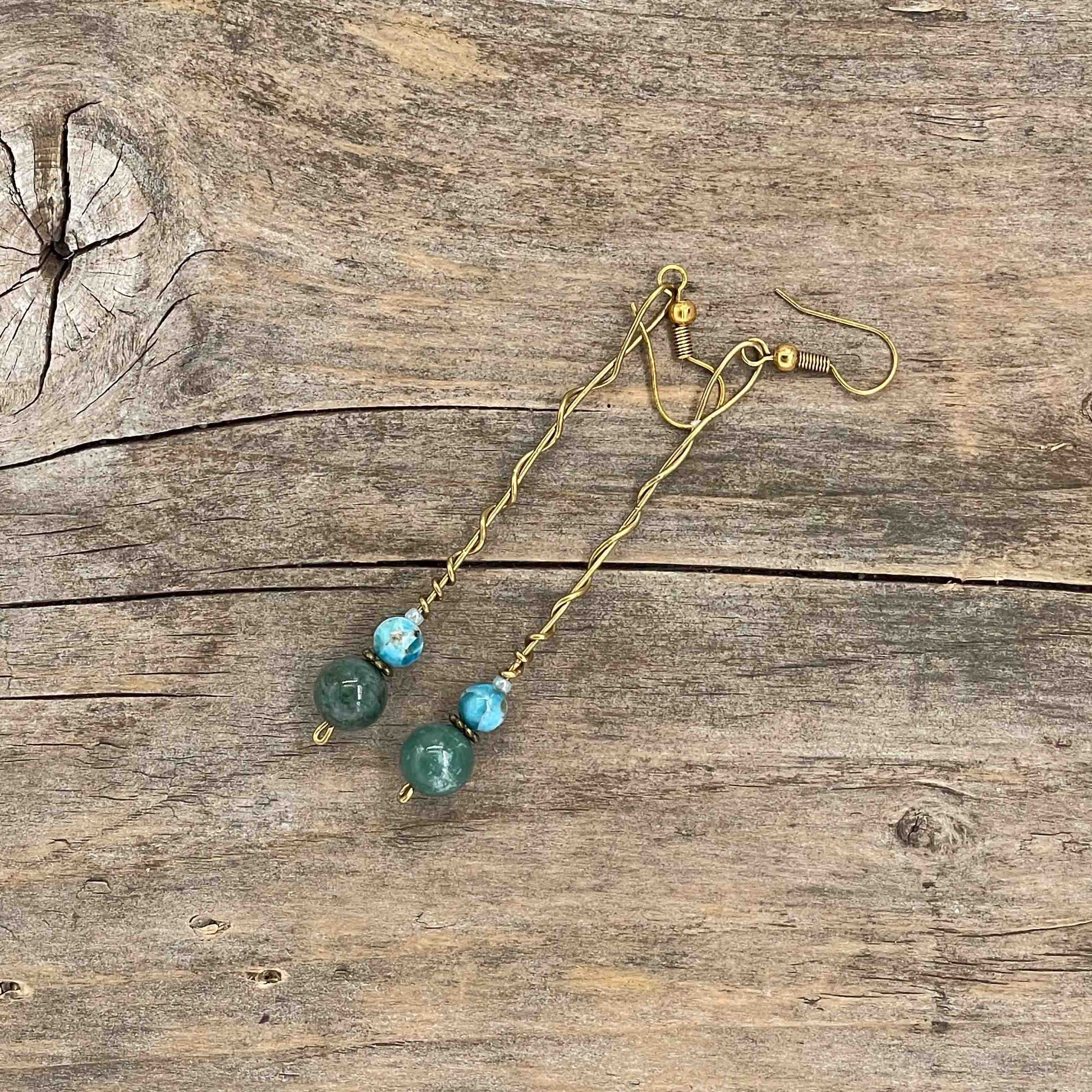 Perlene er av ekte stein, messing eller gullbelagt kobber. Messing wire. Nikkelfrie kroker.
