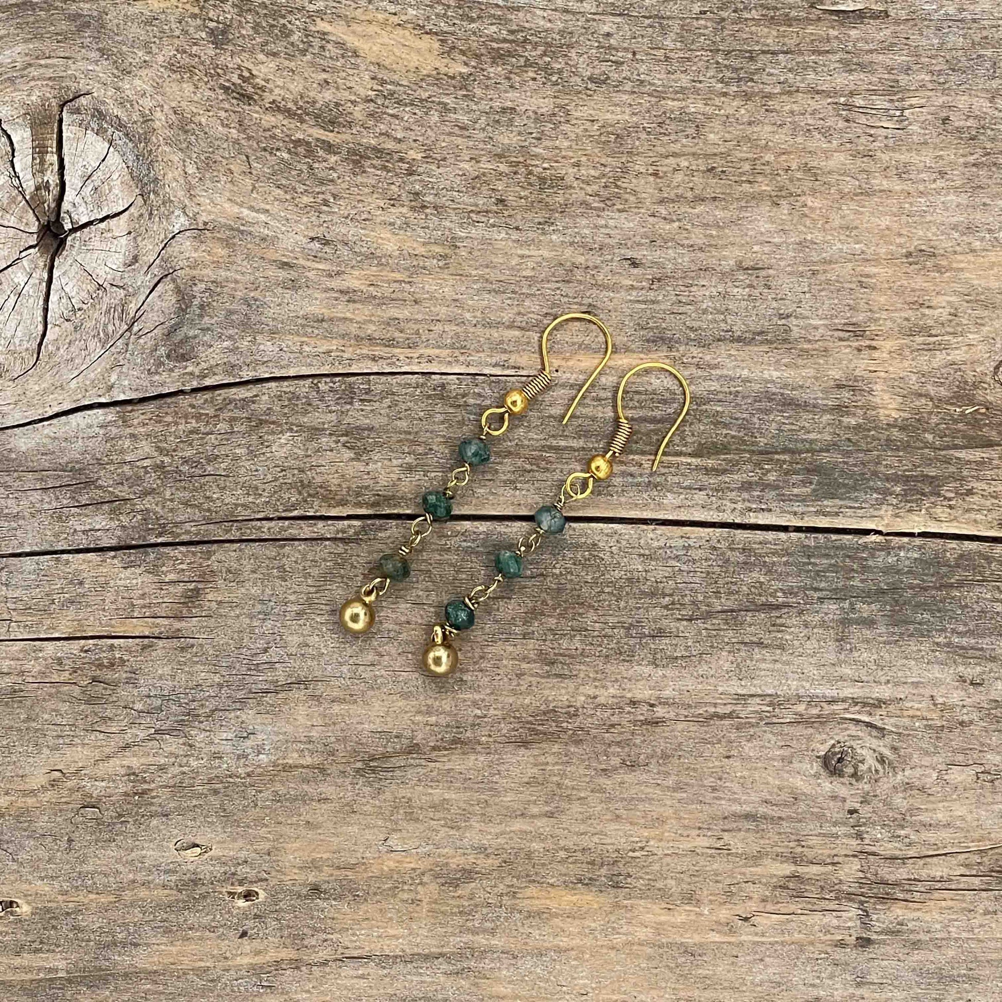 Perlene er av ekte stein, messing eller gullbelagt kobber. Messing wire. Nikkelfrie kroker.