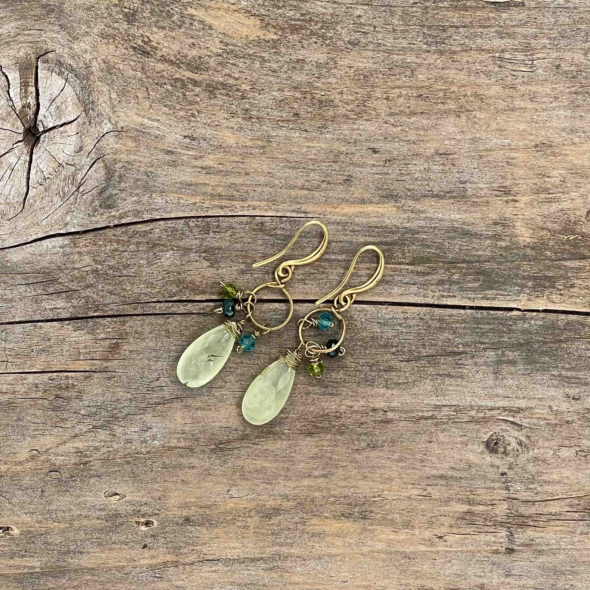 Øredobber i Gull med Prehnitt - 45 mm - 167