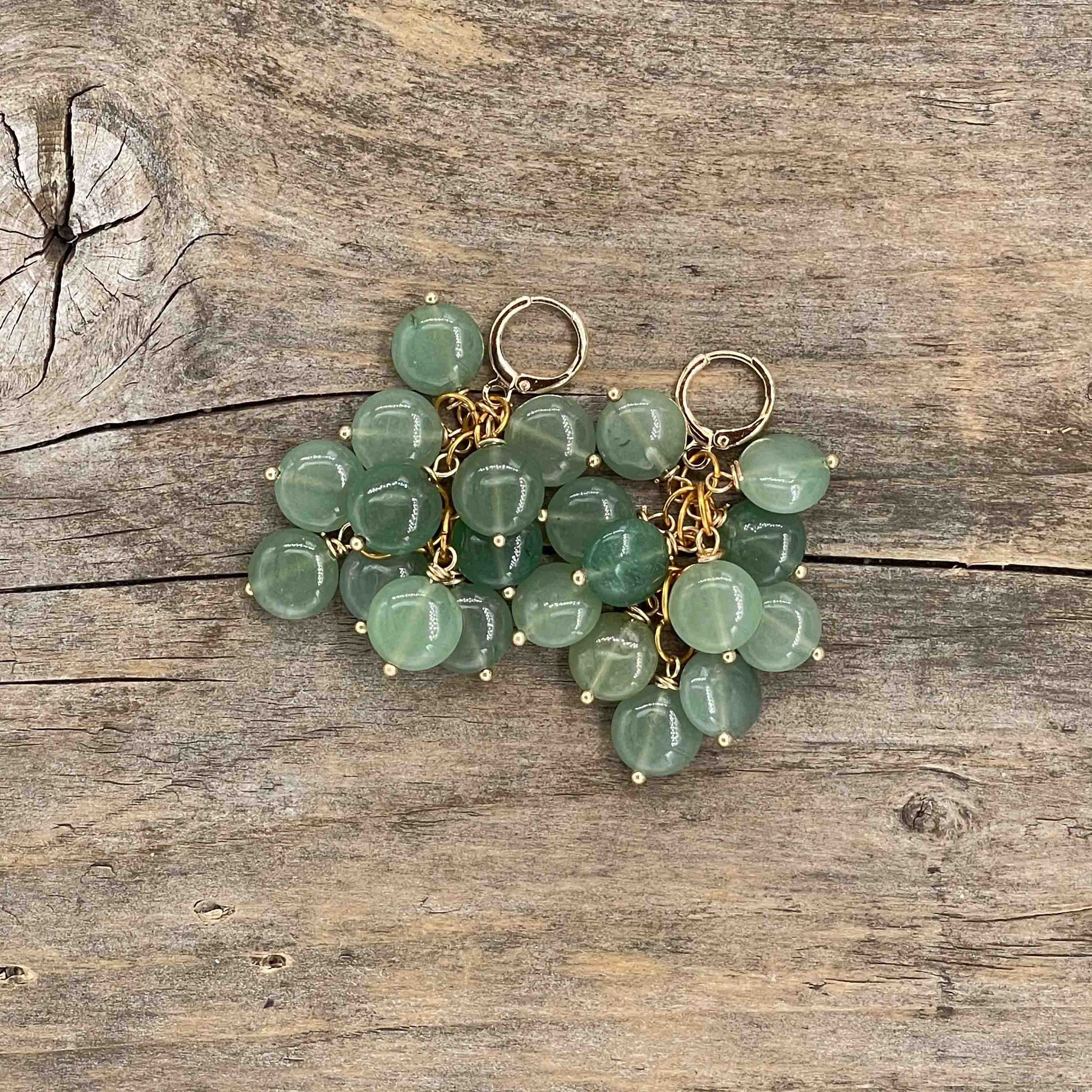 Perlene er av ekte stein, messing eller gullbelagt kobber. Messing wire. Nikkelfrie kroker.