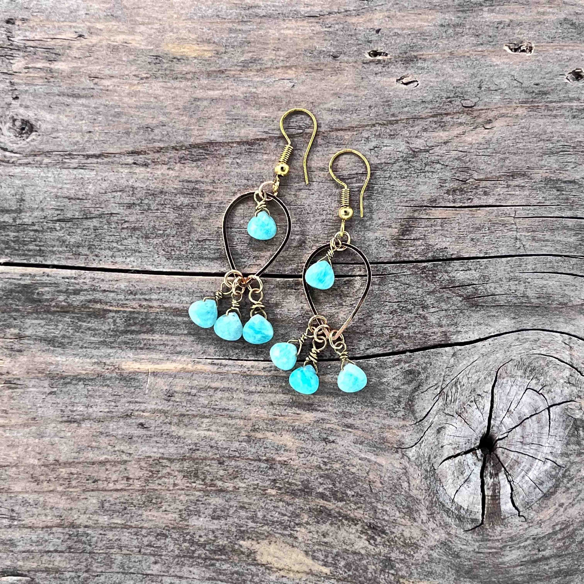 Øredobber i Gull med Amazonitt - 55 mm - 733