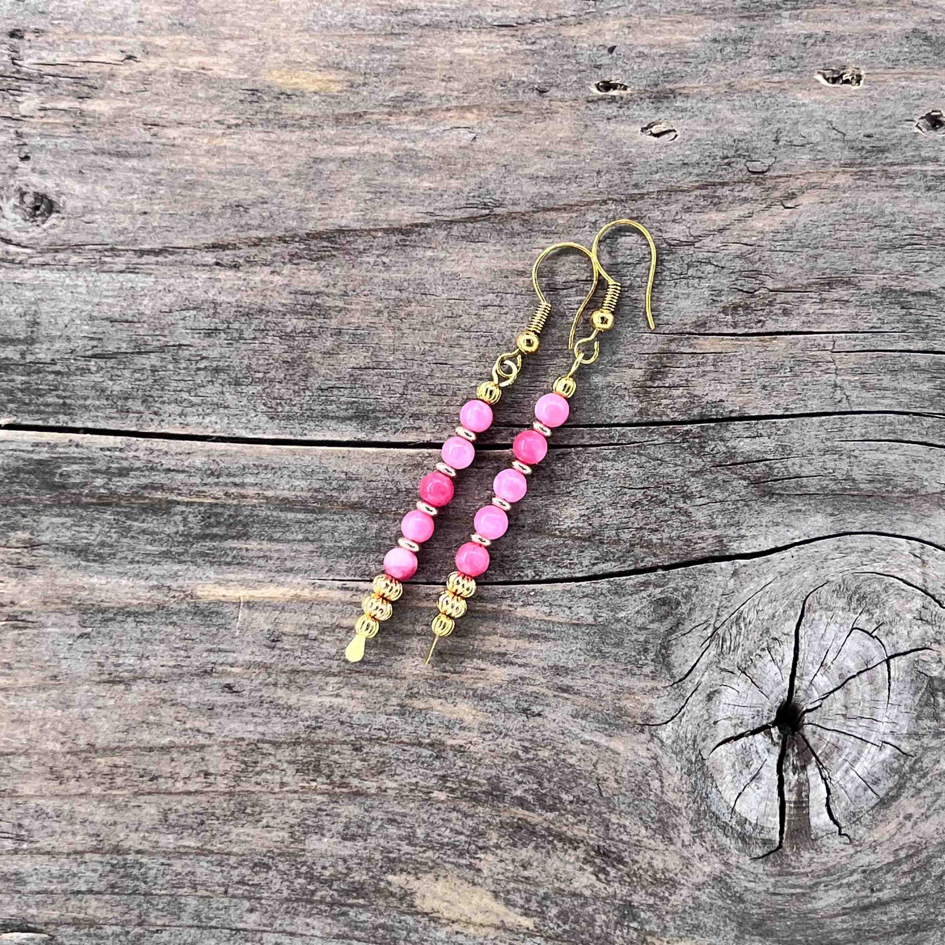 Øredobber i Gull med Rhodokrositt - 60 mm - 735