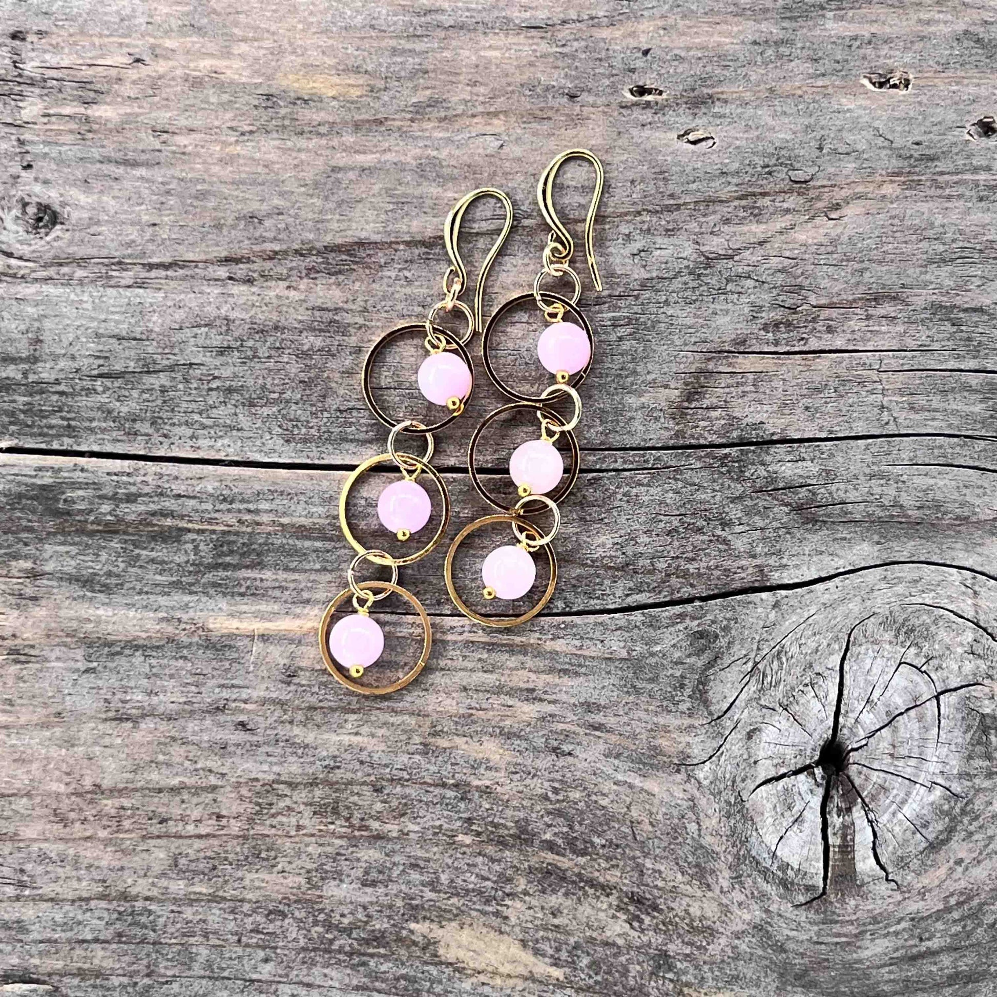 Perlene er av ekte stein, messing eller gullbelagt kobber. Messing wire. Nikkelfrie kroker.