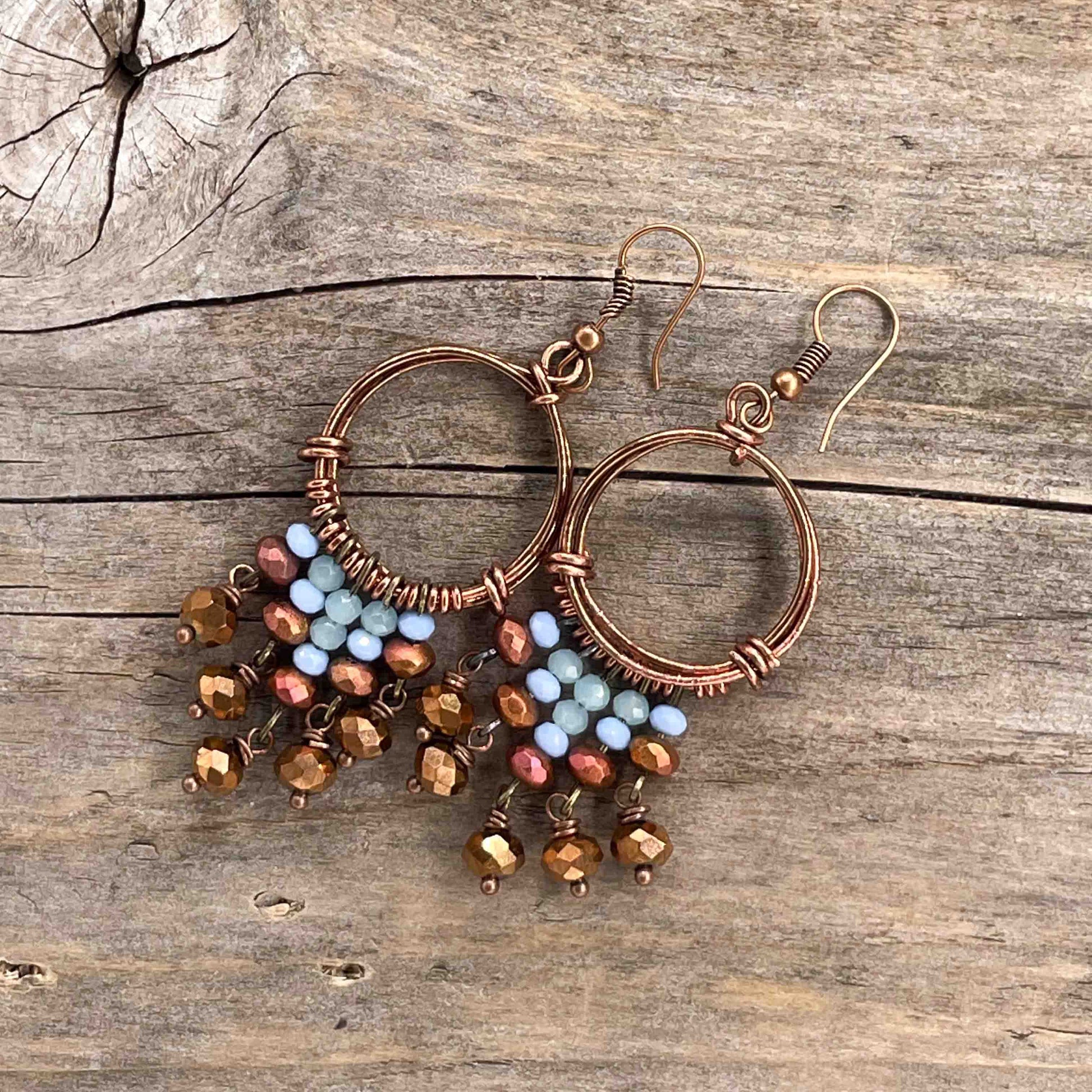 Perlene er av ekte stein, glass eller kobber. Kobbe wire, Nikkelfrie kobber kroker.