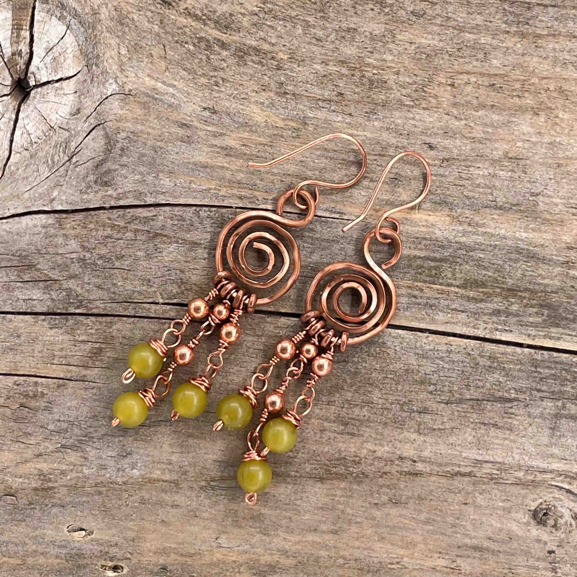 Perlene er av ekte stein, glass eller kobber. Kobbe wire, Nikkelfrie kobber kroker.