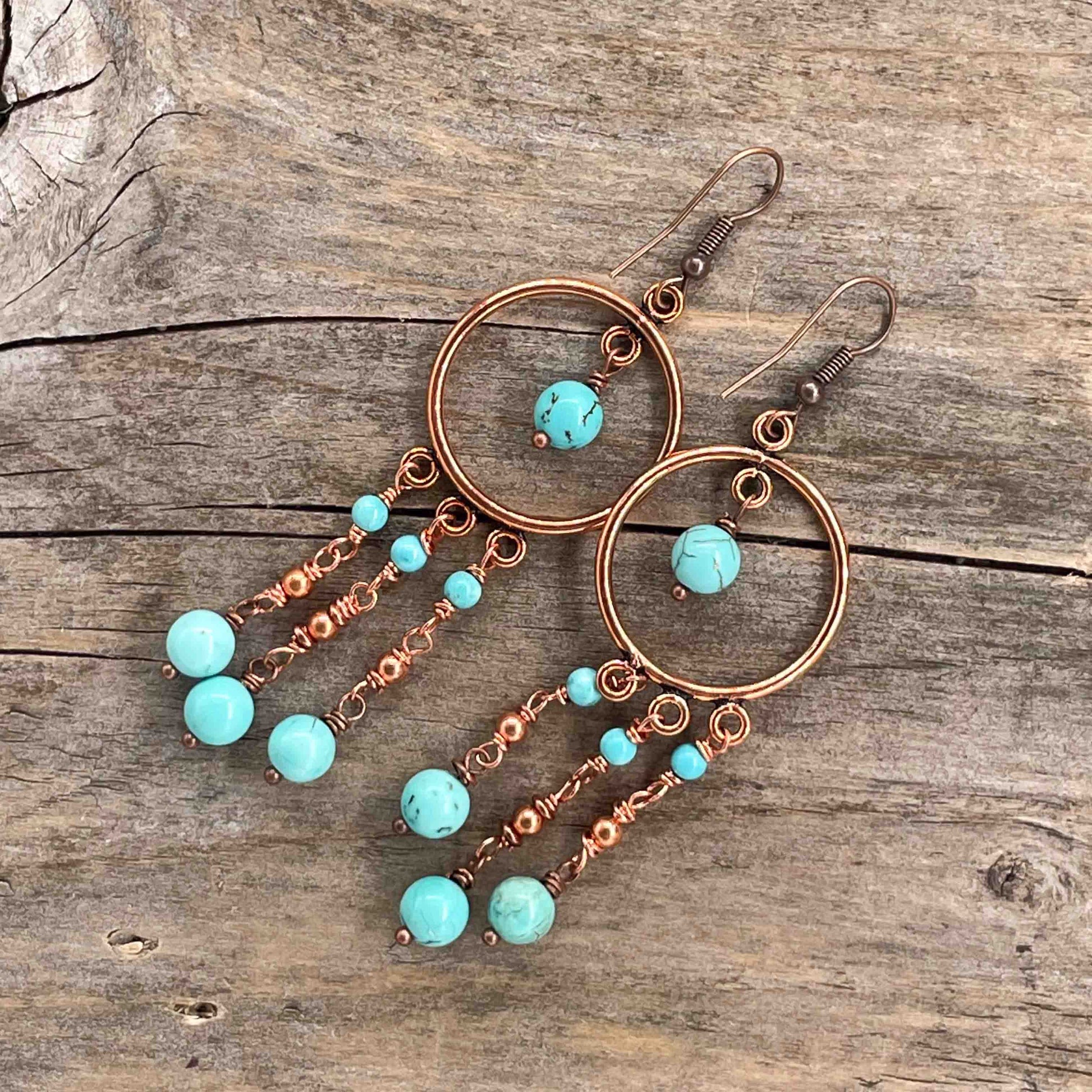 Perlene er av ekte stein, glass eller kobber. Kobbe wire, Nikkelfrie kobber kroker.