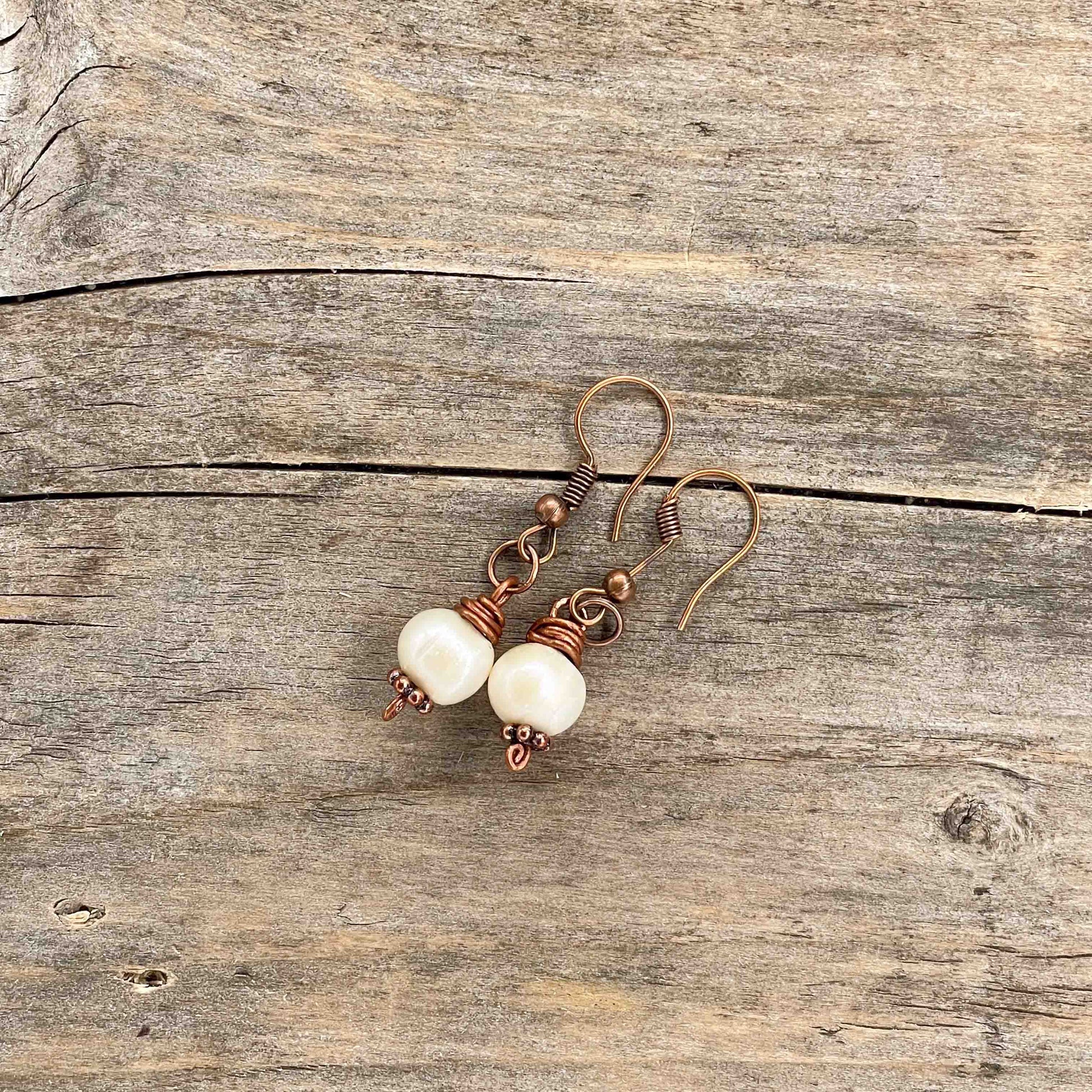 Øredobber i Kobber med Glassperler - 40 mm - 212