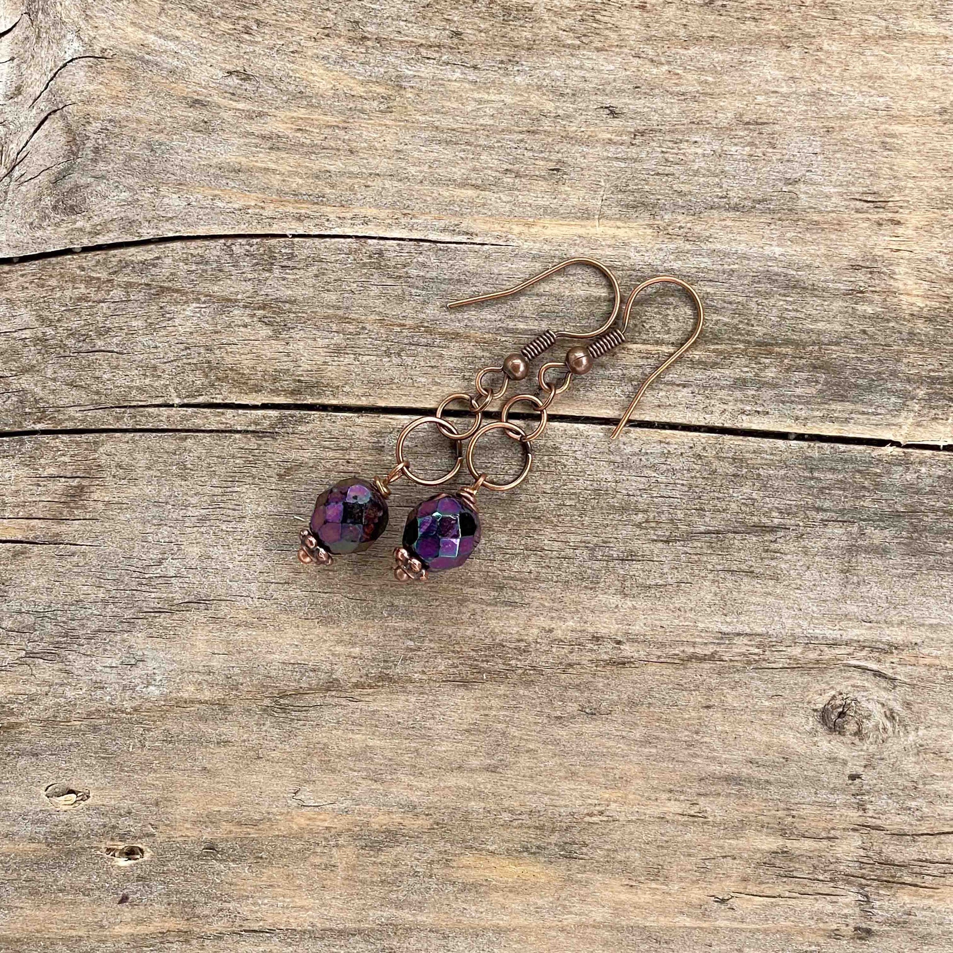 Øredobber i Kobber med Glassperler - 45 mm - 213