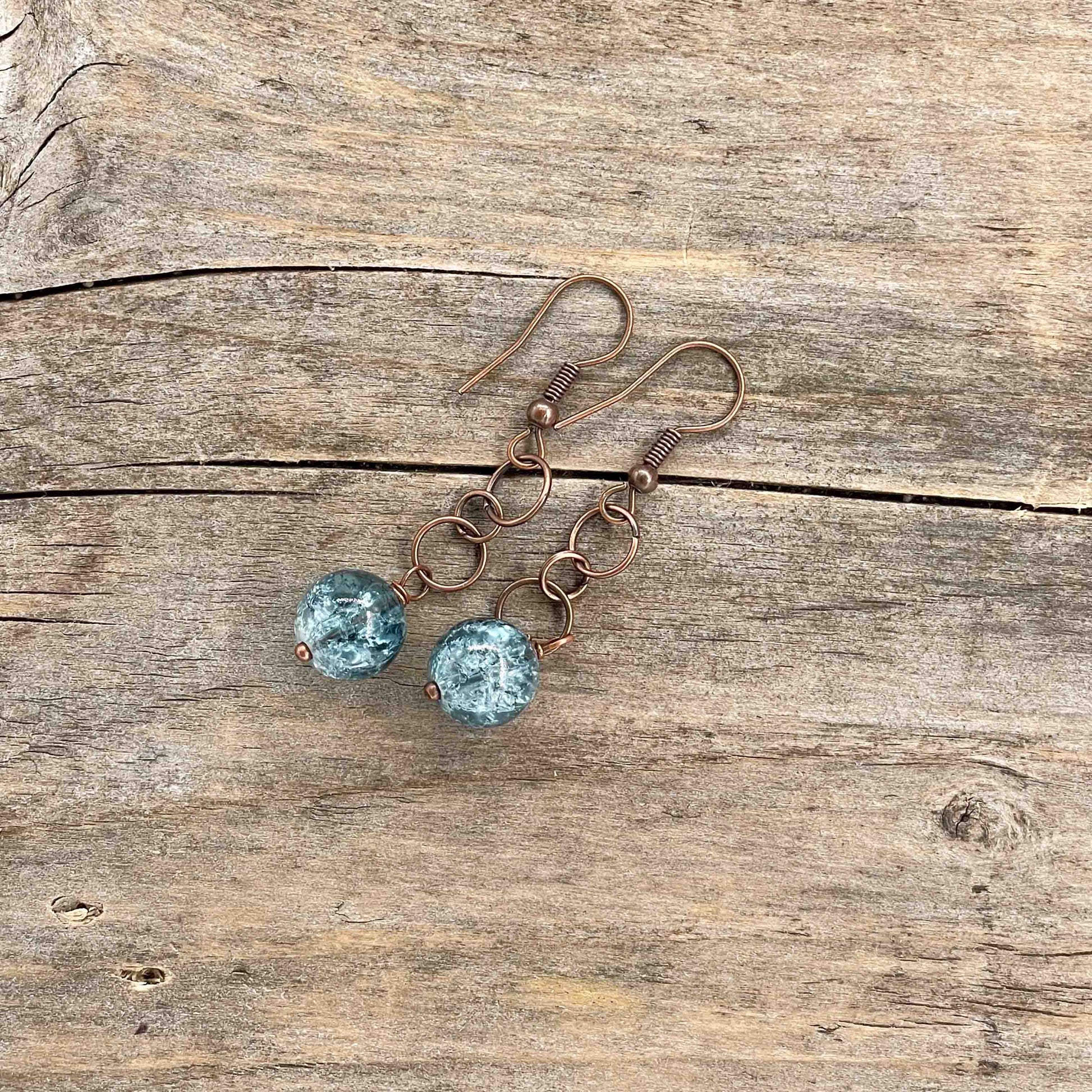Øredobber i Kobber med Glassperler - 50 mm - 214