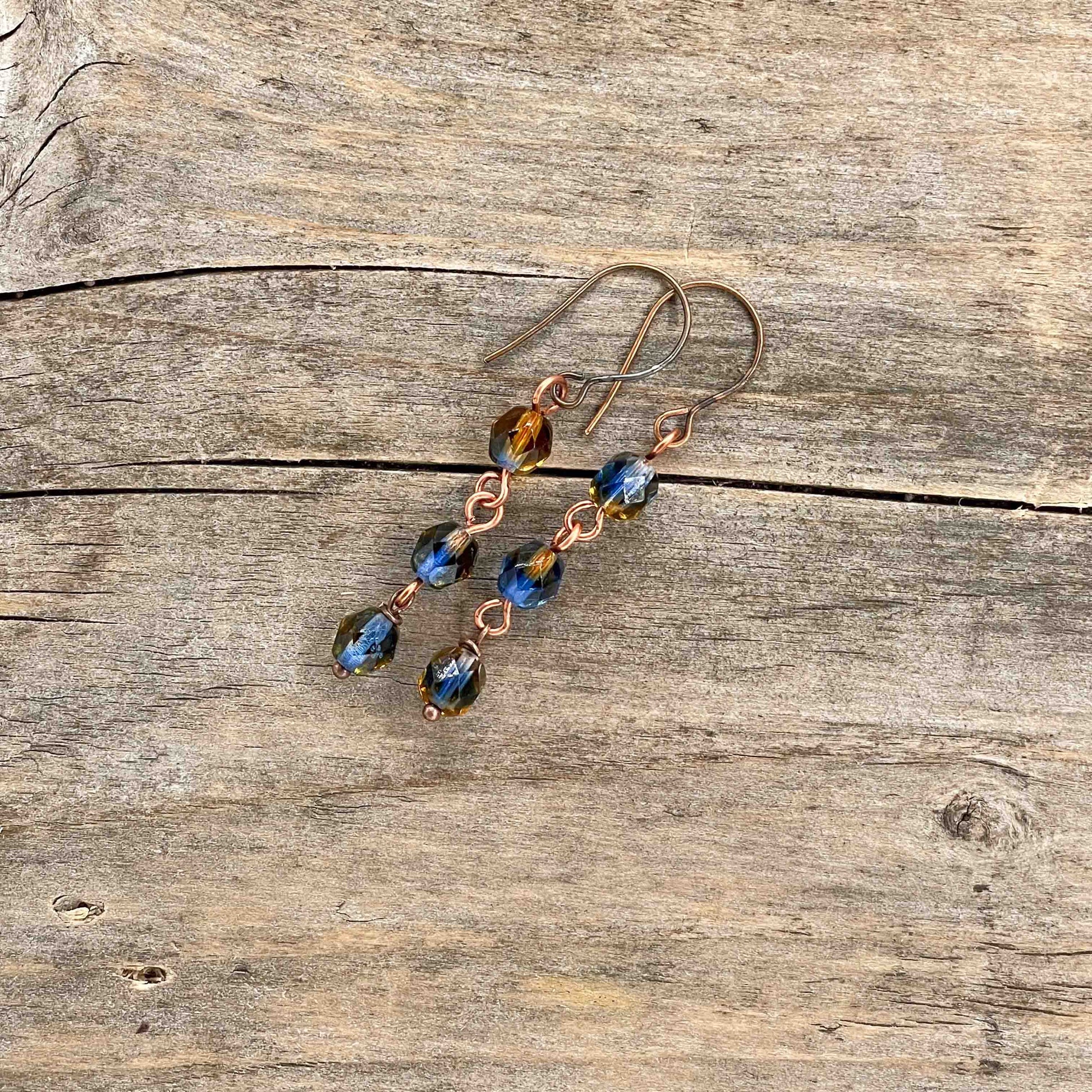 Øredobber i Kobber med Glassperler - 50 mm - 217