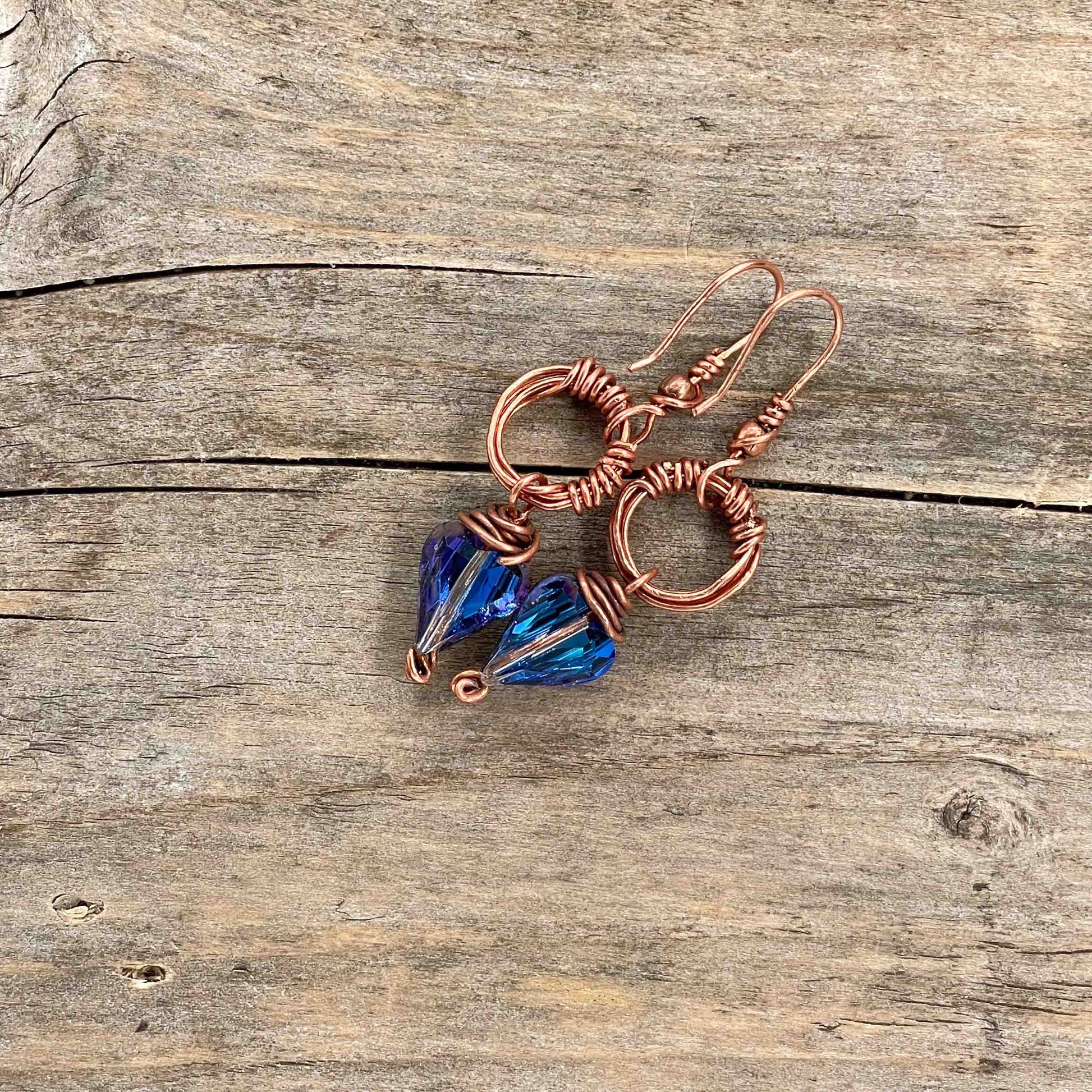 Øredobber i Kobber med Glassperler - 55 mm - 219