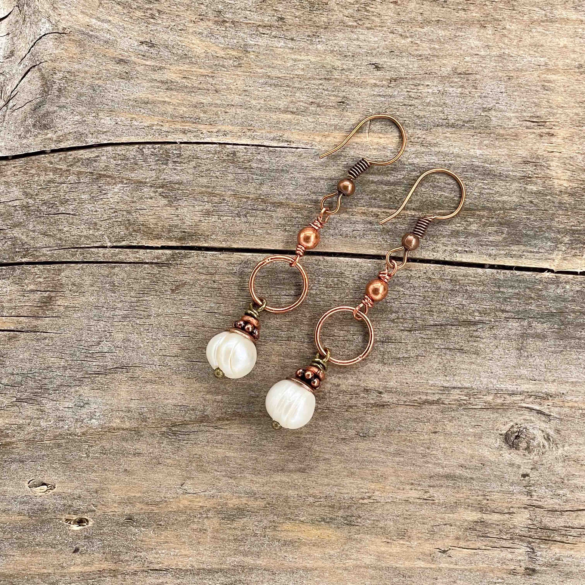 Øredobber i Kobber med Glassperler - 55 mm - 220
