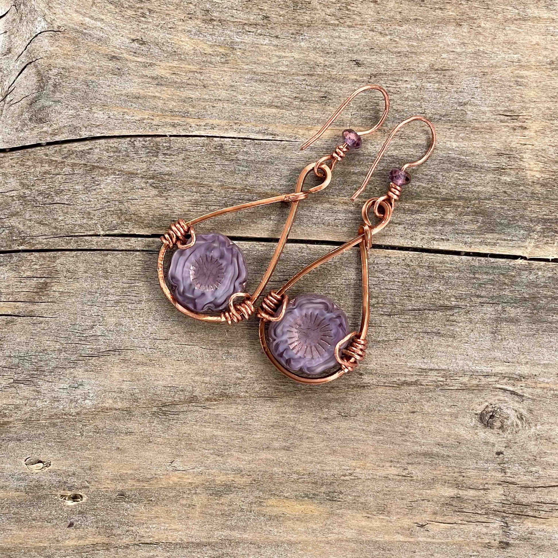Øredobber i Kobber med Glassperler - 55 mm - 221