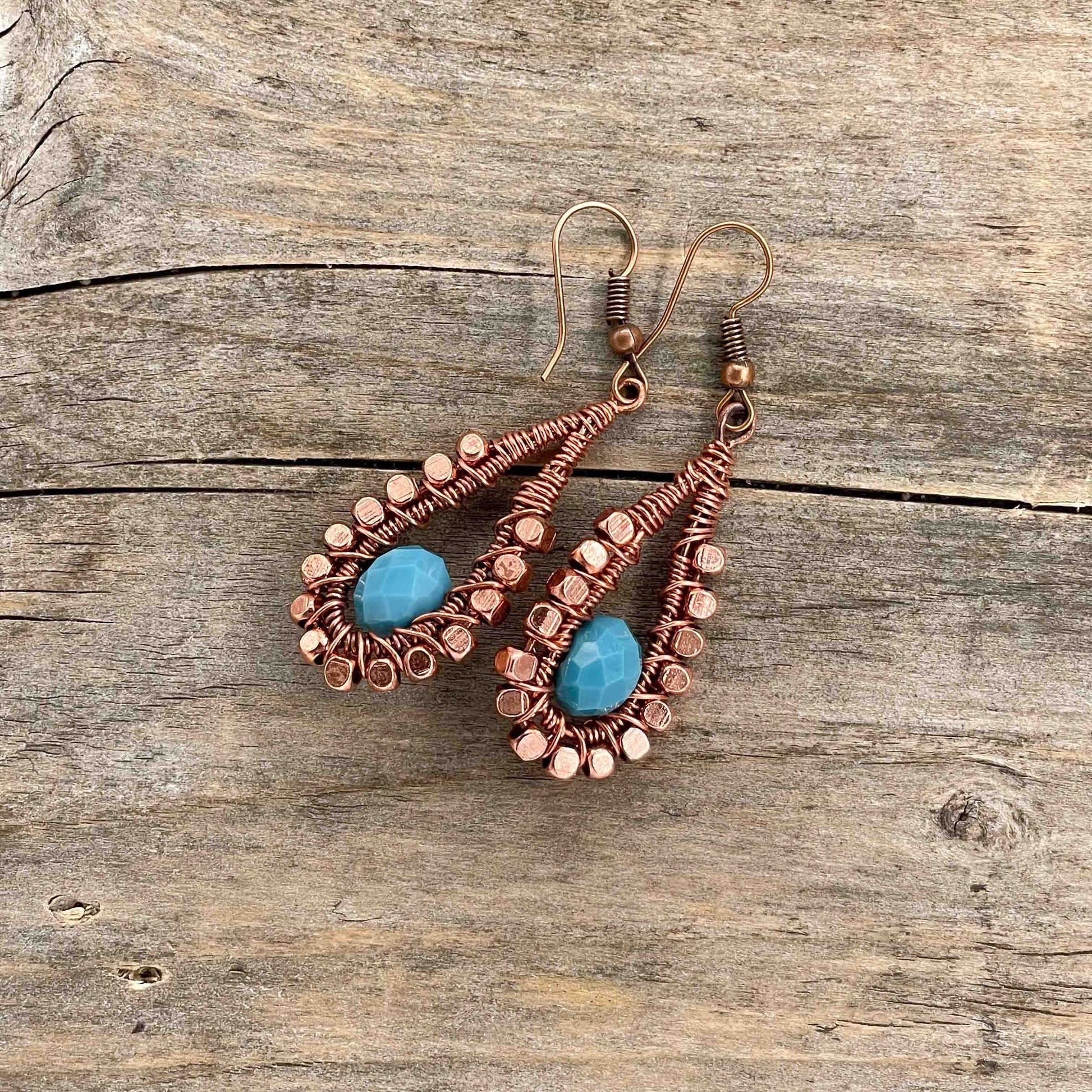 Øredobber i Kobber med Glassperler - 60 mm - 222