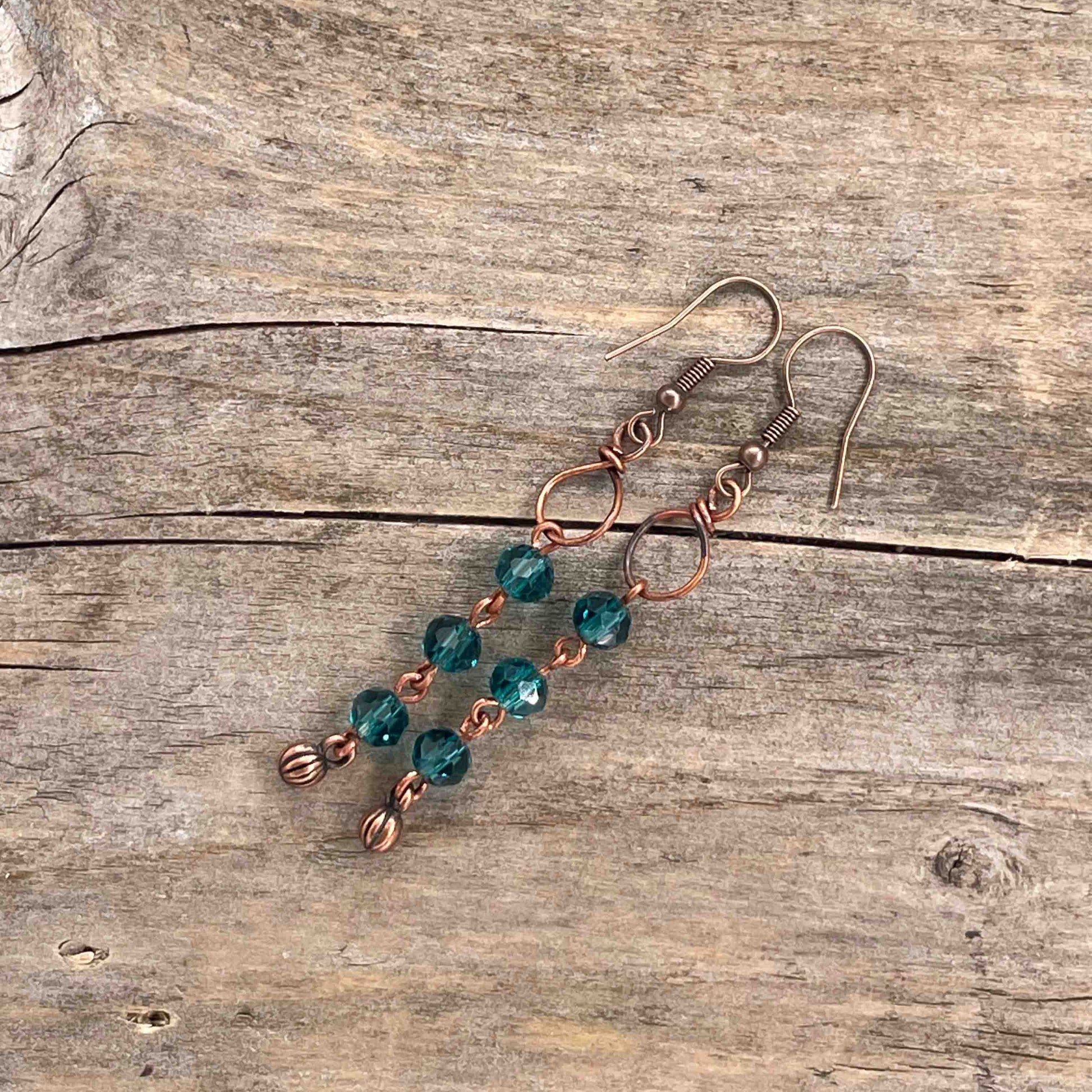 Øredobber i Kobber med Glassperler - 65 mm - 226