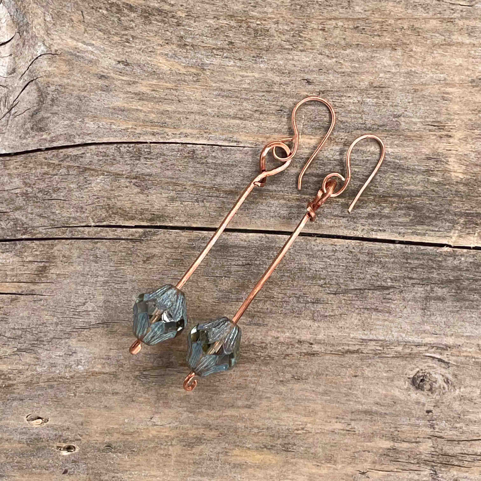 Øredobber i Kobber med Glassperler - 70 mm - 228