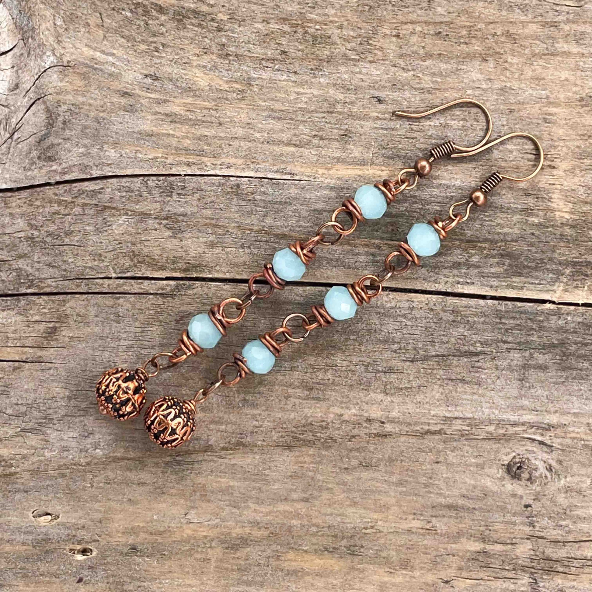 Øredobber i Kobber med Glassperler - 85 mm - 229