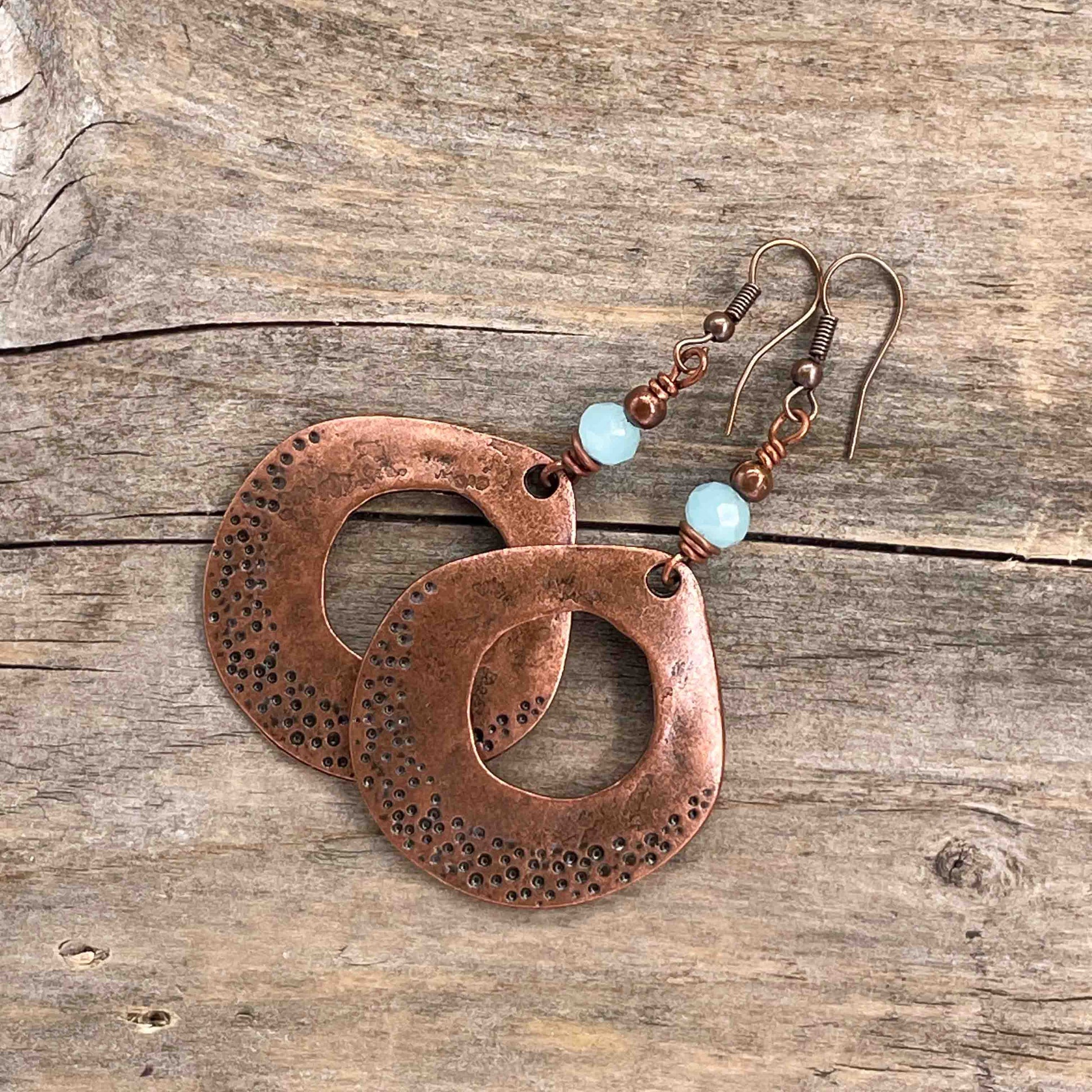 Øredobber i Kobber med Glassperler - 70 mm - 231
