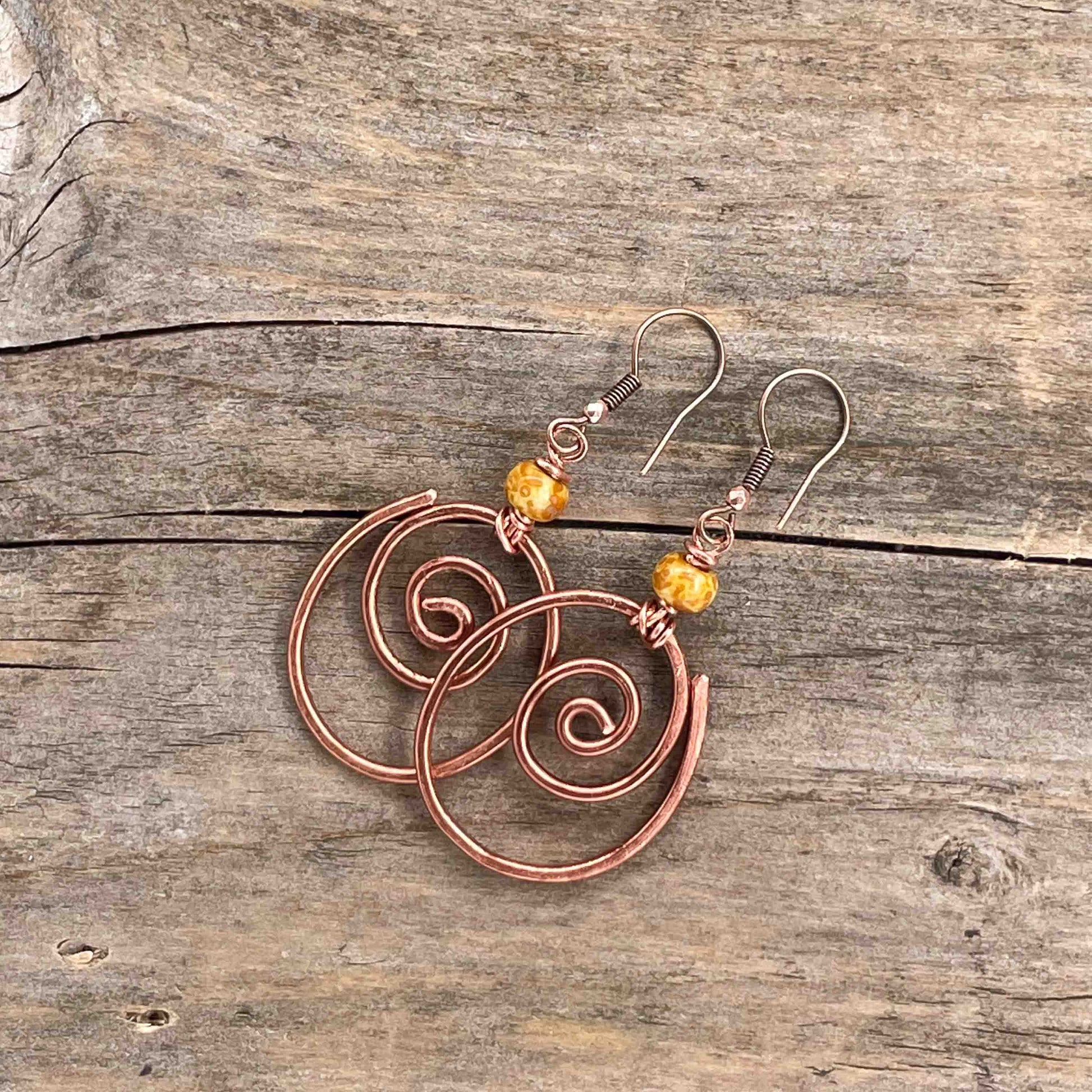 Øredobber i Kobber med Glassperler - 60 mm - 233