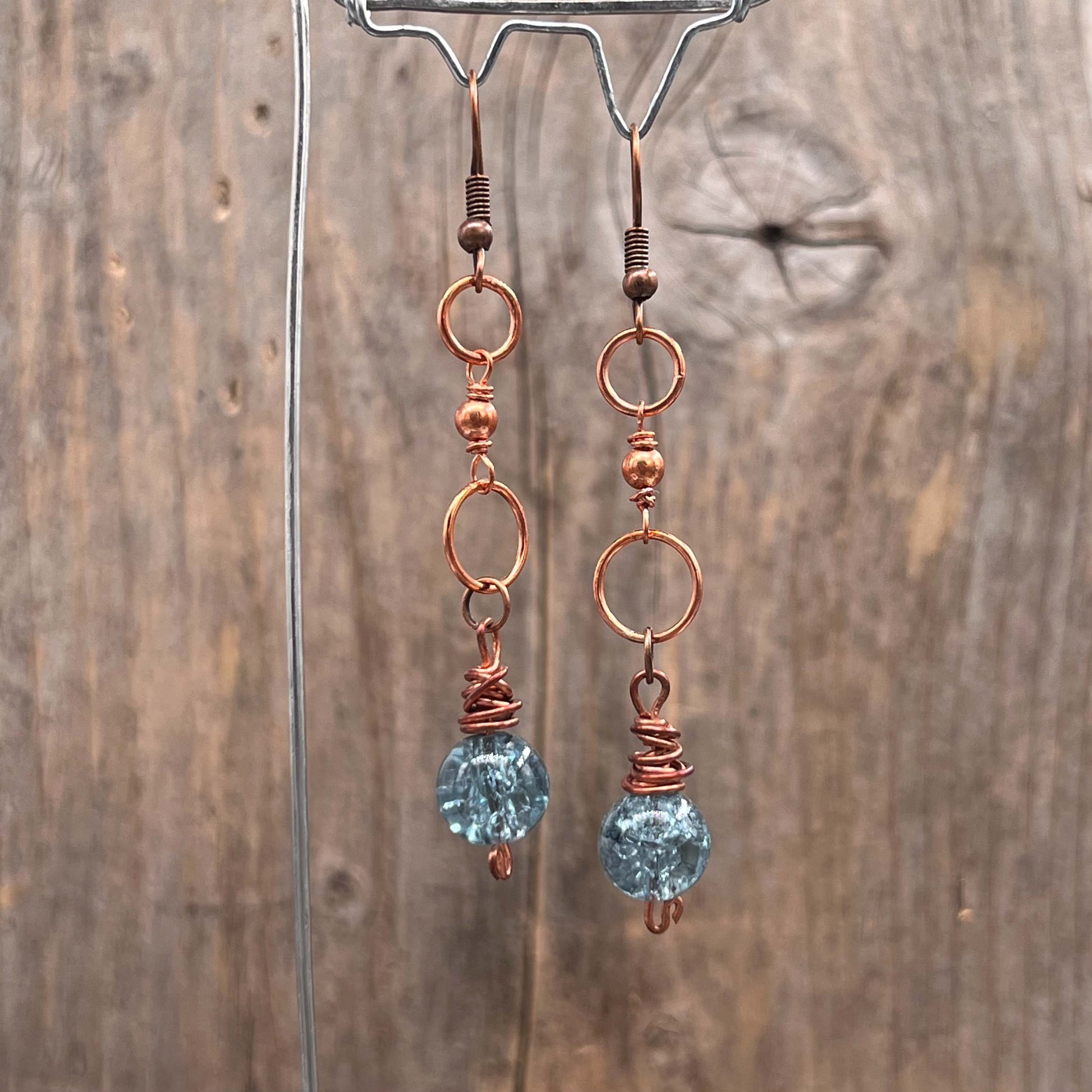 Øredobber i Kobber med Glassperler - 75 mm - 884