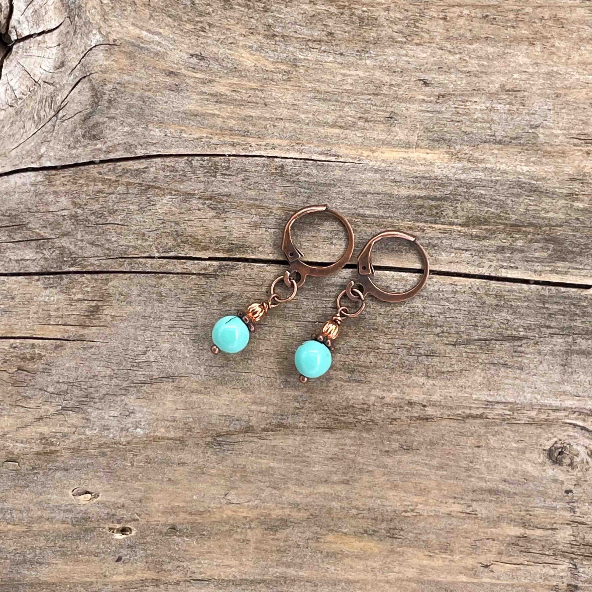 Øredobber i Kobber med Turkis - 35 mm - 236