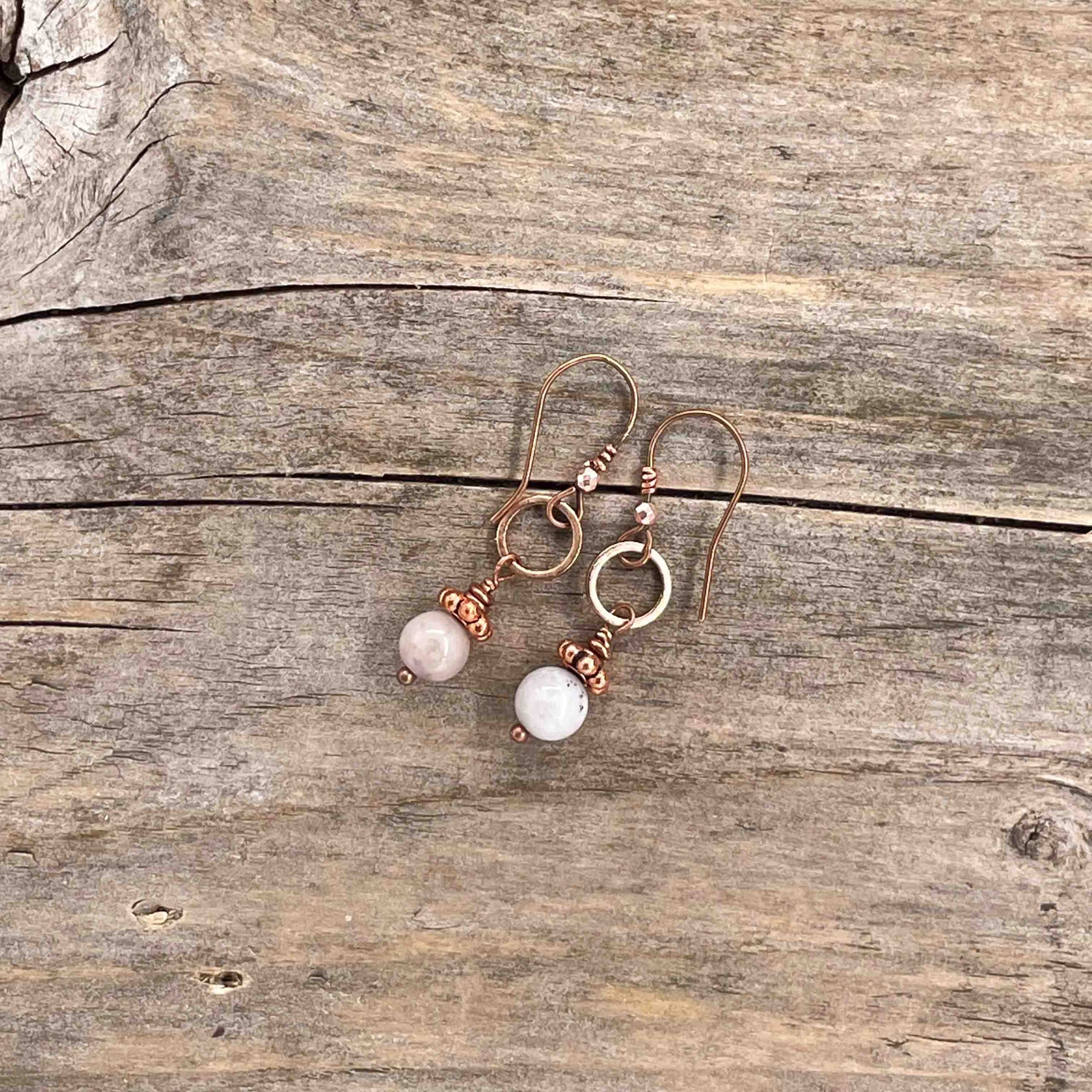Perlene er av ekte steiner, glass eller og kobber. Kobber wire. Nikkelfrie kobber kroker.
