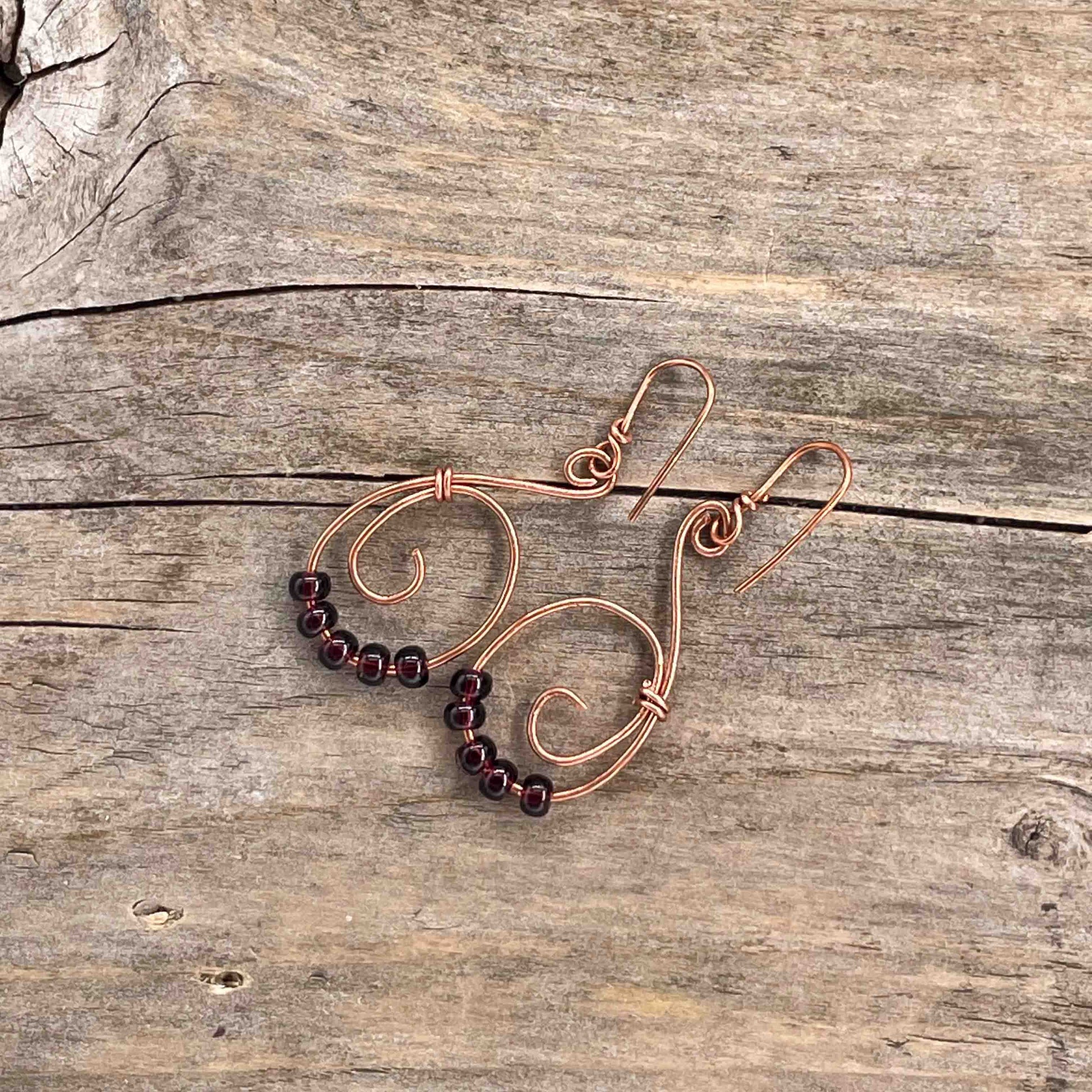 Perlene er av ekte steiner, glass eller og kobber. Kobber wire. Nikkelfrie kobber kroker.