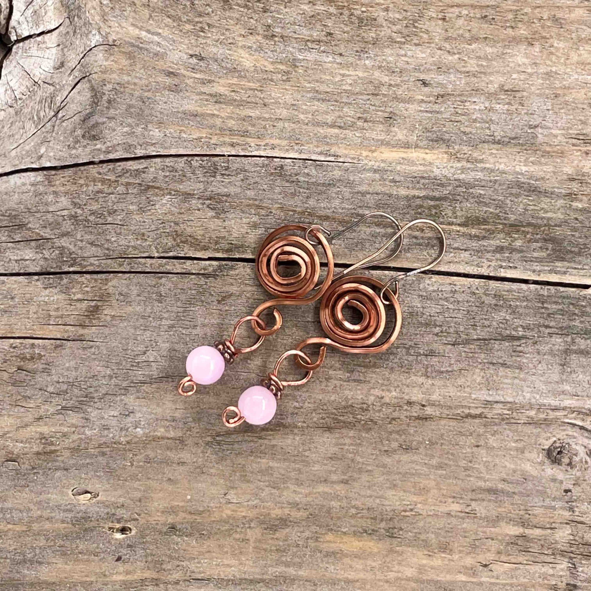 Perlene er av ekte steiner, glass eller og kobber. Kobber wire. Nikkelfrie kobber kroker.