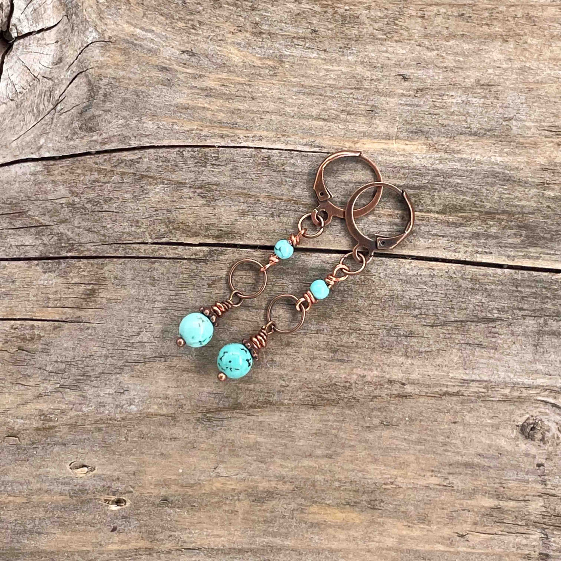 Øredobber i Kobber med Turkis - 50 mm - 244