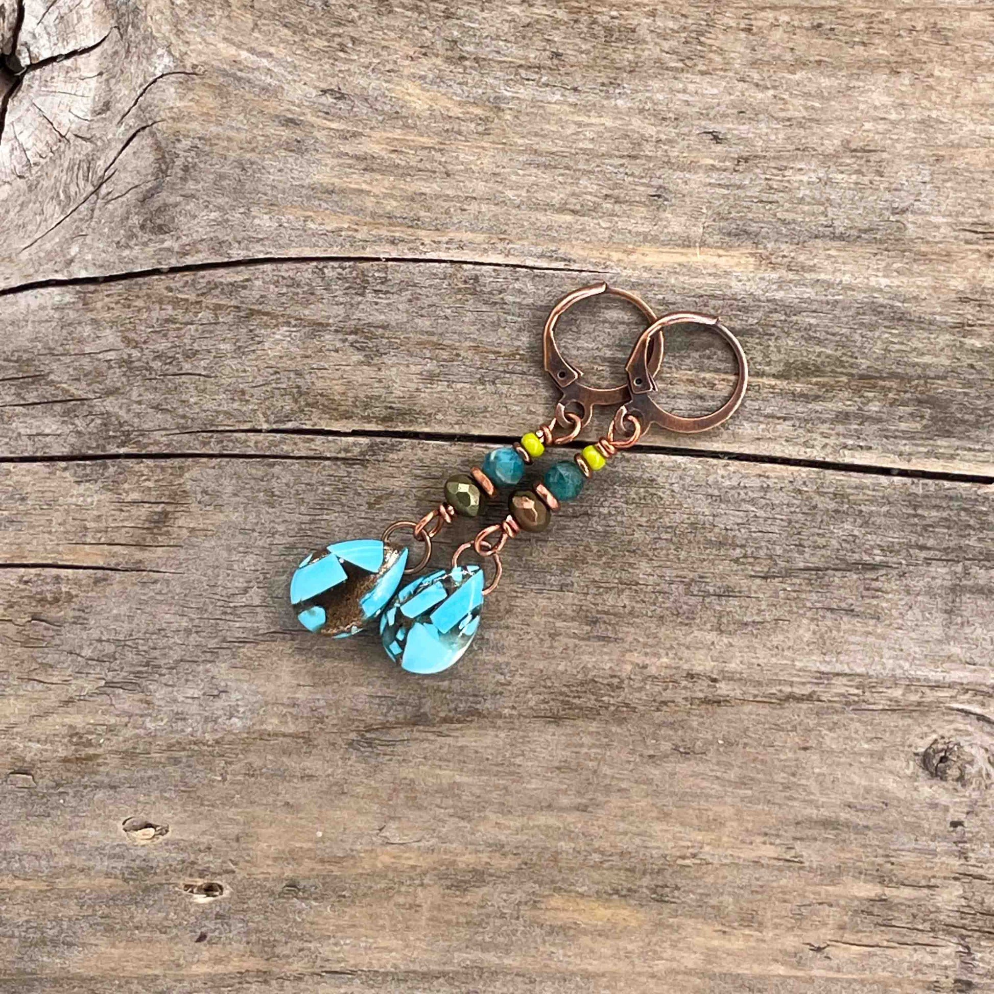 Øredobber i Kobber med Turkis - 50 mm - 246
