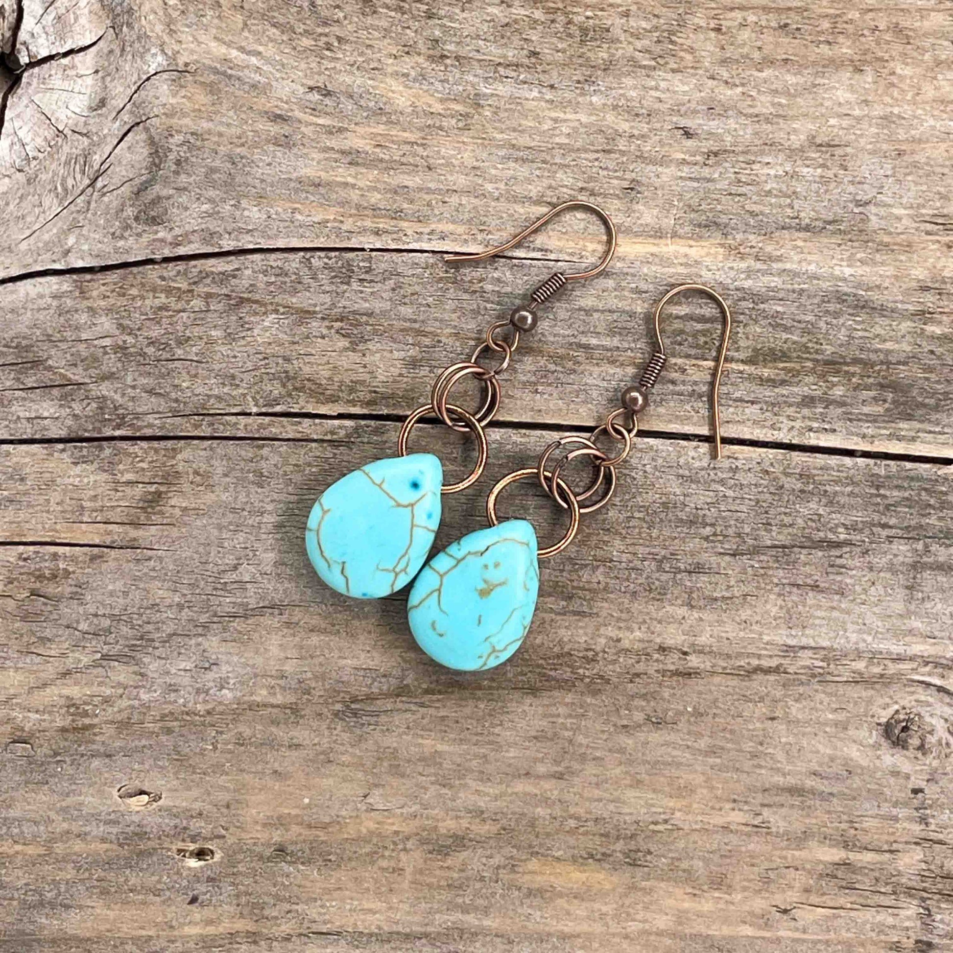 Øredobber i Kobber med Turkis - 50 mm - 247