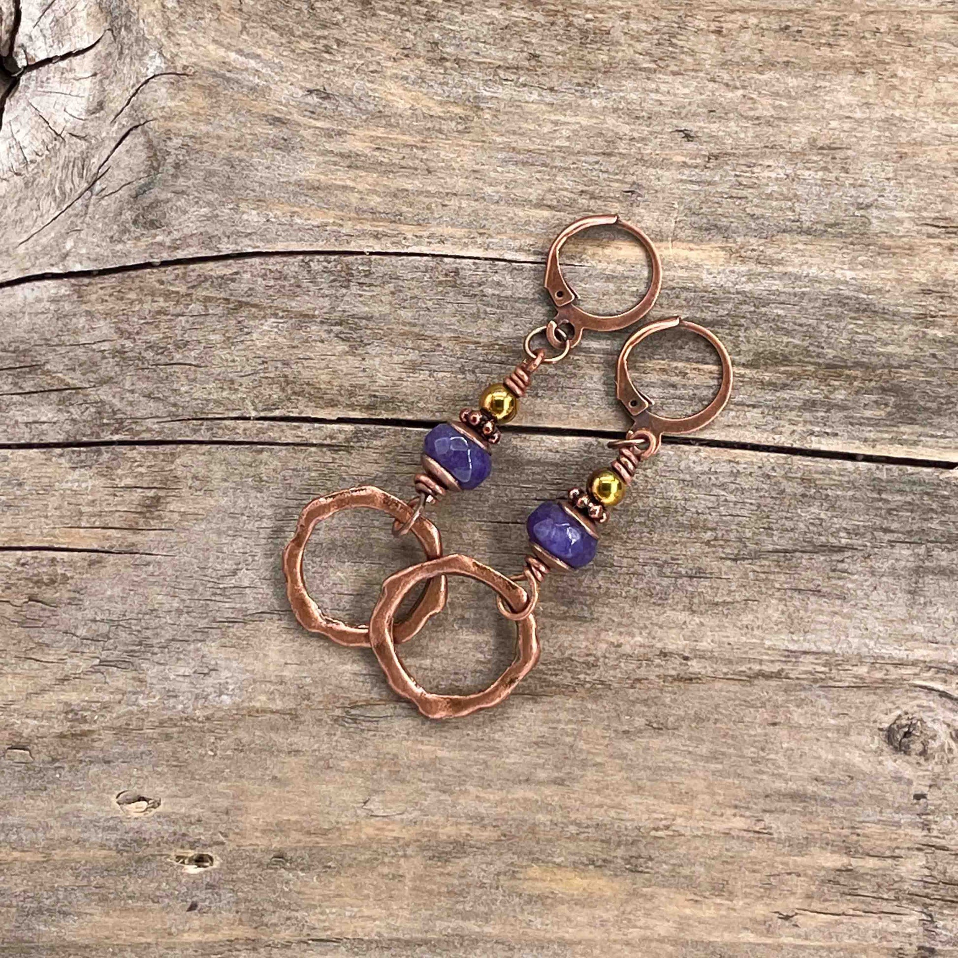 Øredobber i Kobber med Agat - 60 mm - 252