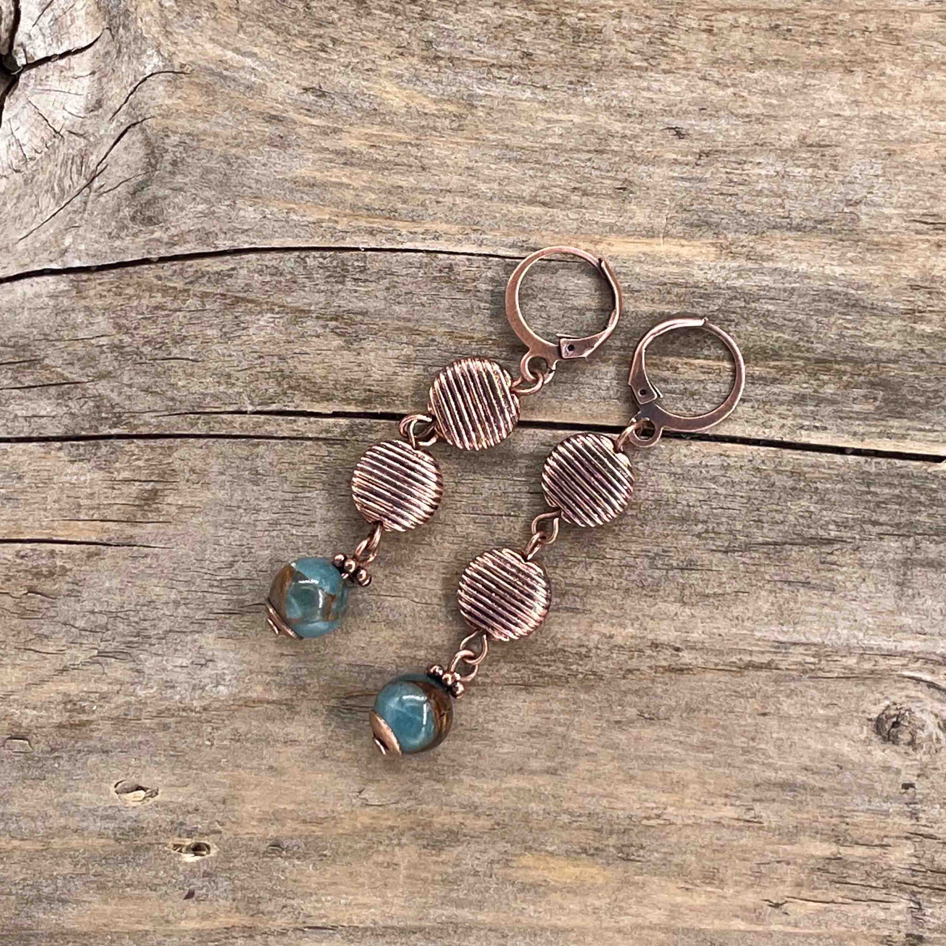 Perlene er av ekte steiner, glass eller og kobber. Kobber wire. Nikkelfrie kobber kroker.