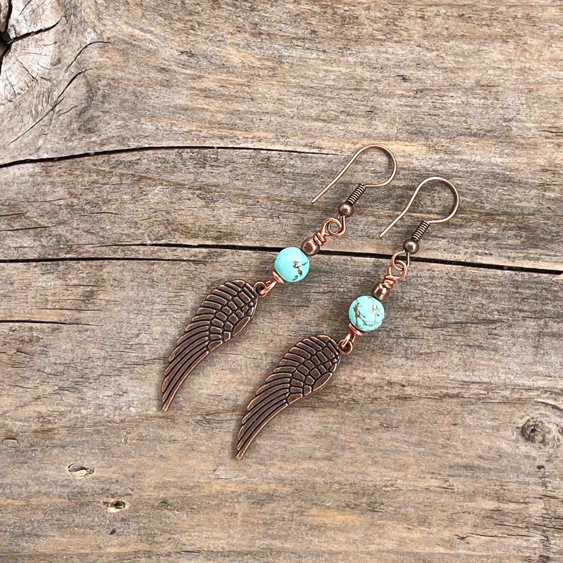 Øredobber i Kobber med Turkis - 65 mm - 260