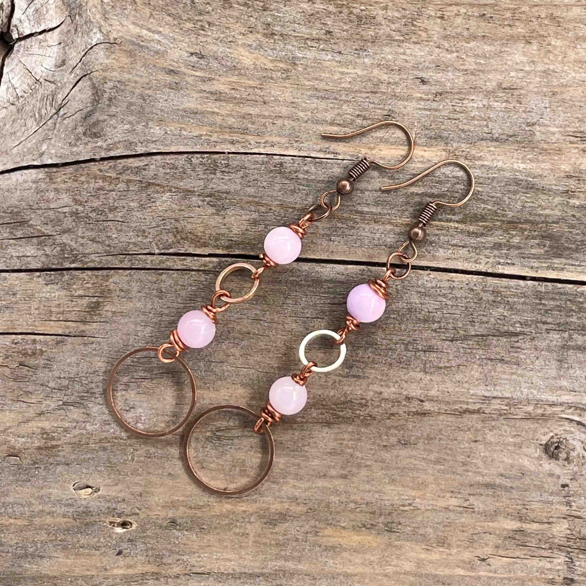 Perlene er av ekte steiner, glass eller og kobber. Kobber wire. Nikkelfrie kobber kroker.