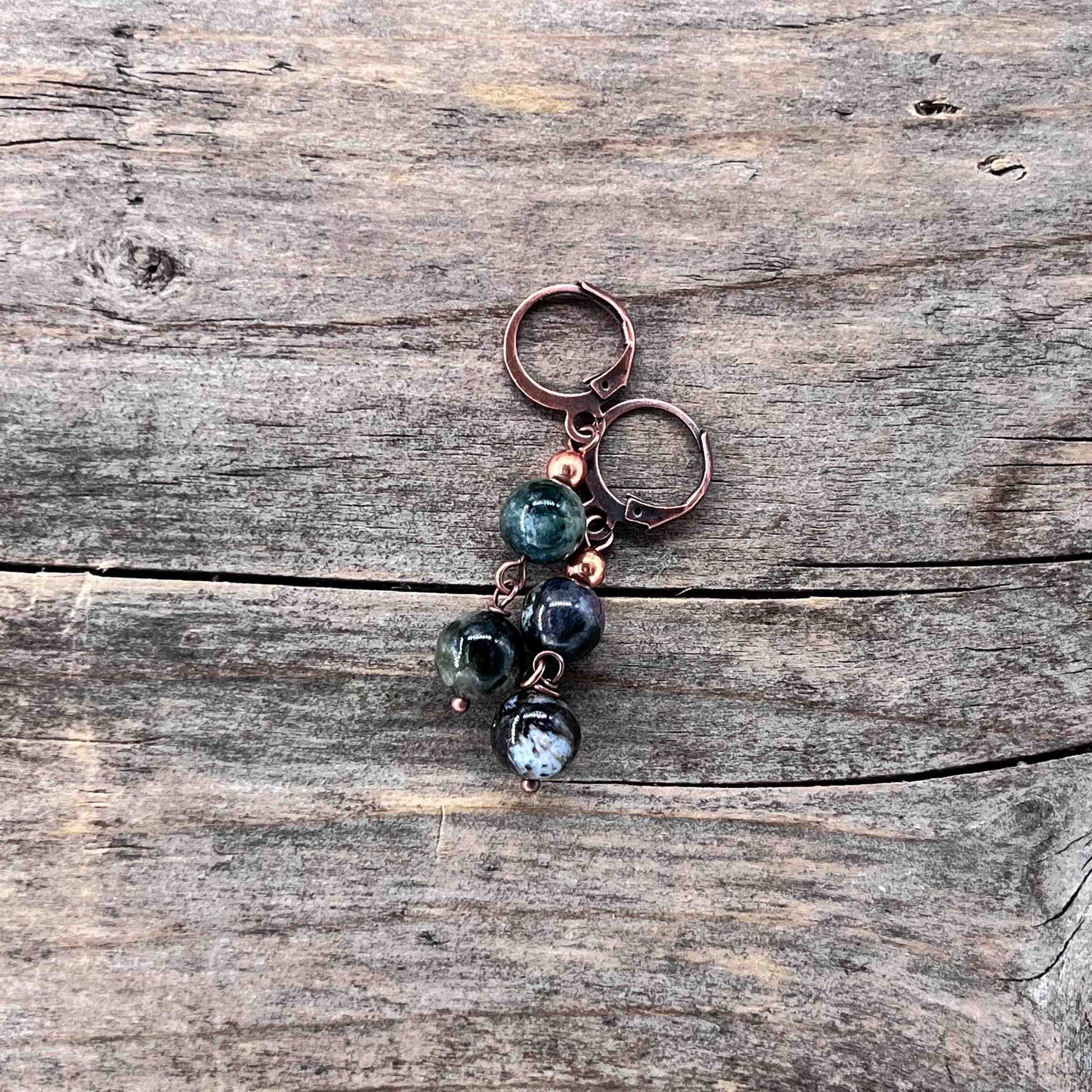 Perlene er av ekte steiner, glass eller og kobber. Kobber wire. Nikkelfrie kobber kroker.