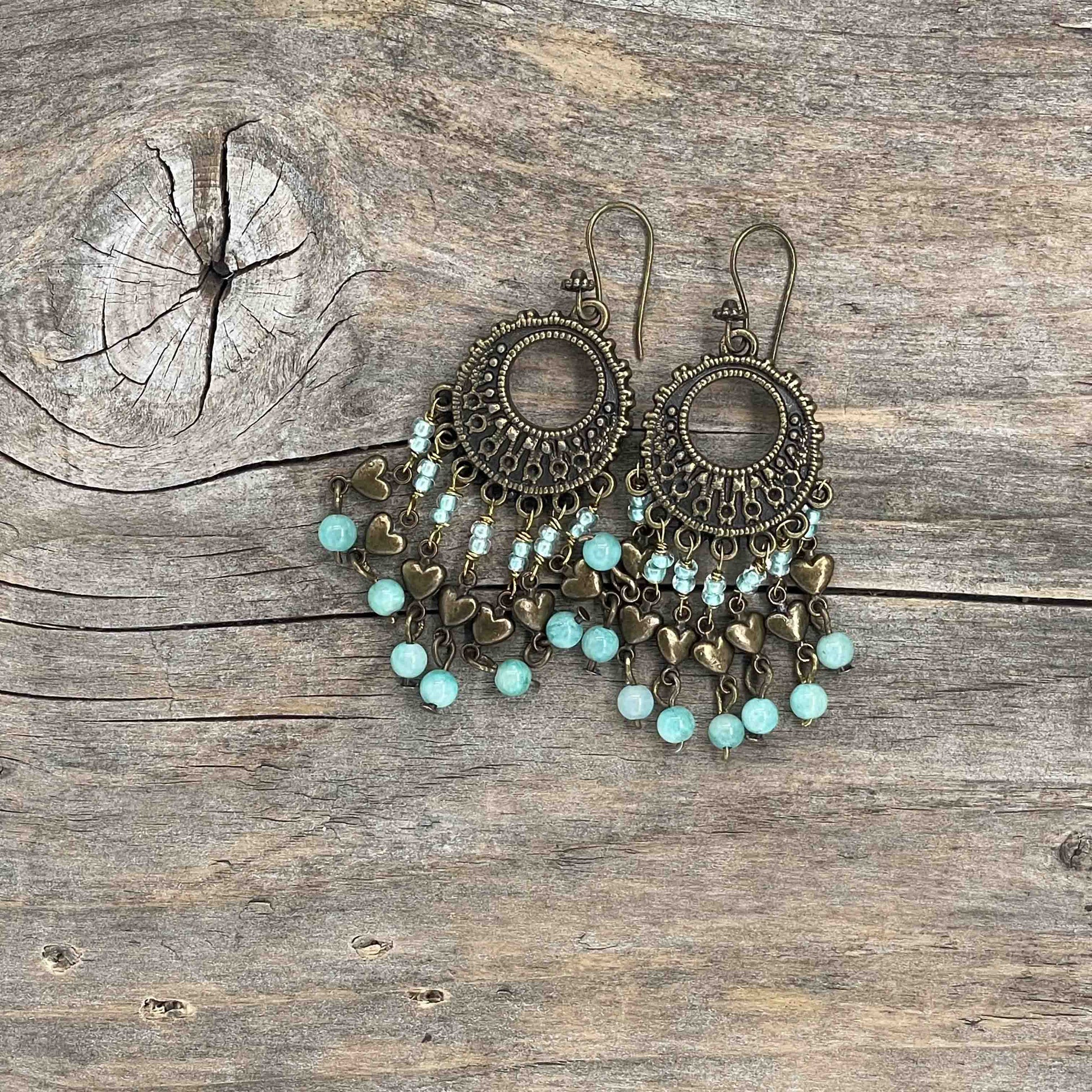 Perlene er av ekte steiner, messing eller bronse. Messing wire. Nikkelfrie kroker.