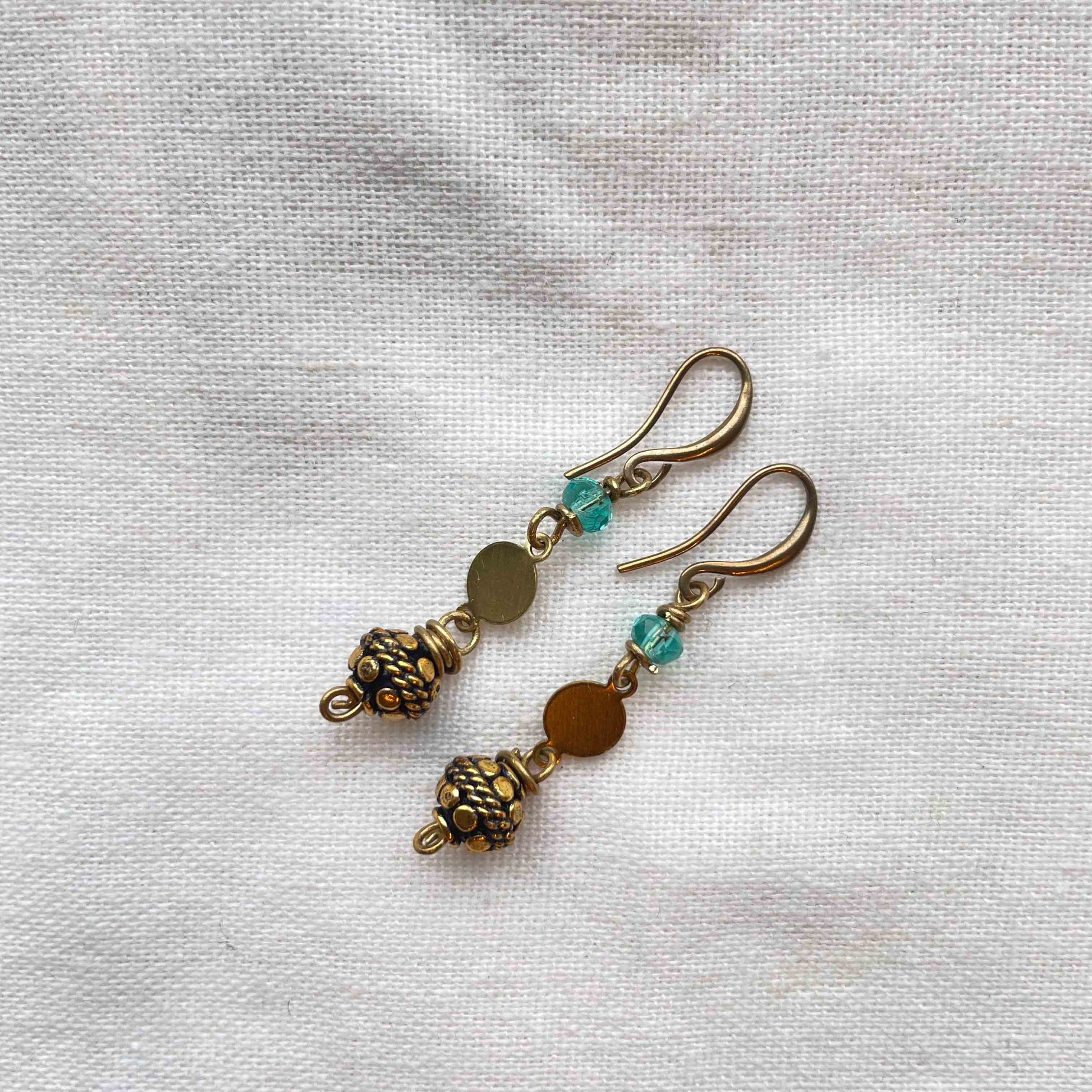 Perlene er av glass, messing eller bronse. Messing wire. Nikkelfrie kroker.