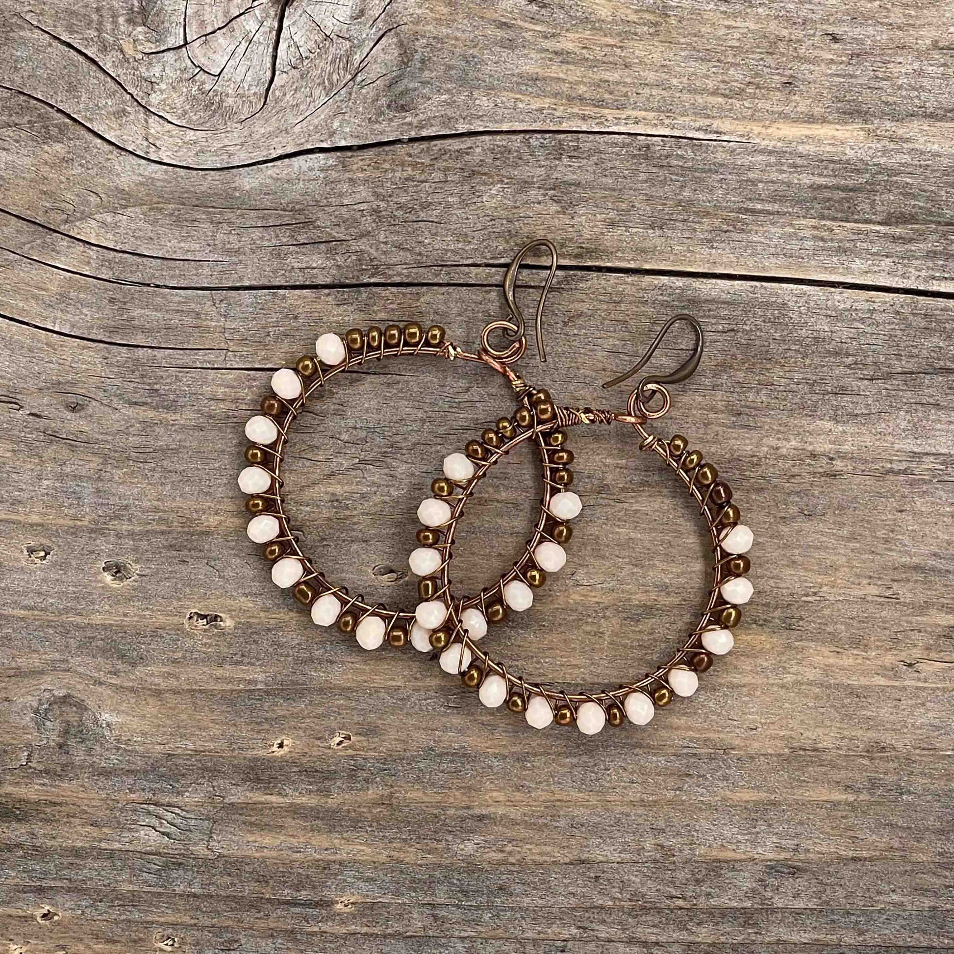 Perlene er av ekte stein, glass, messing eller bronse. Messing wire. Nikkelfrie kroker.